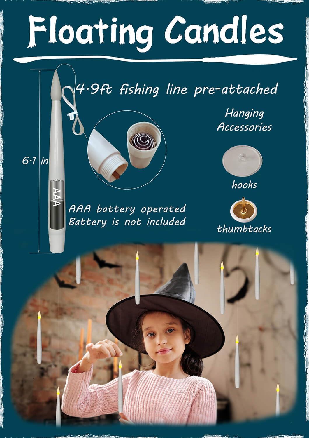 - Indoor decorations: Flickering candles are the perfect addition to your room. You can hang these candles on the ceiling or chandelier to create "floating" candles effect for a Movie Theme party. They also work great for dinner table, fireplace, bedroom, classroom, church service, birthday party, Halloween, Christmas tree decoration.