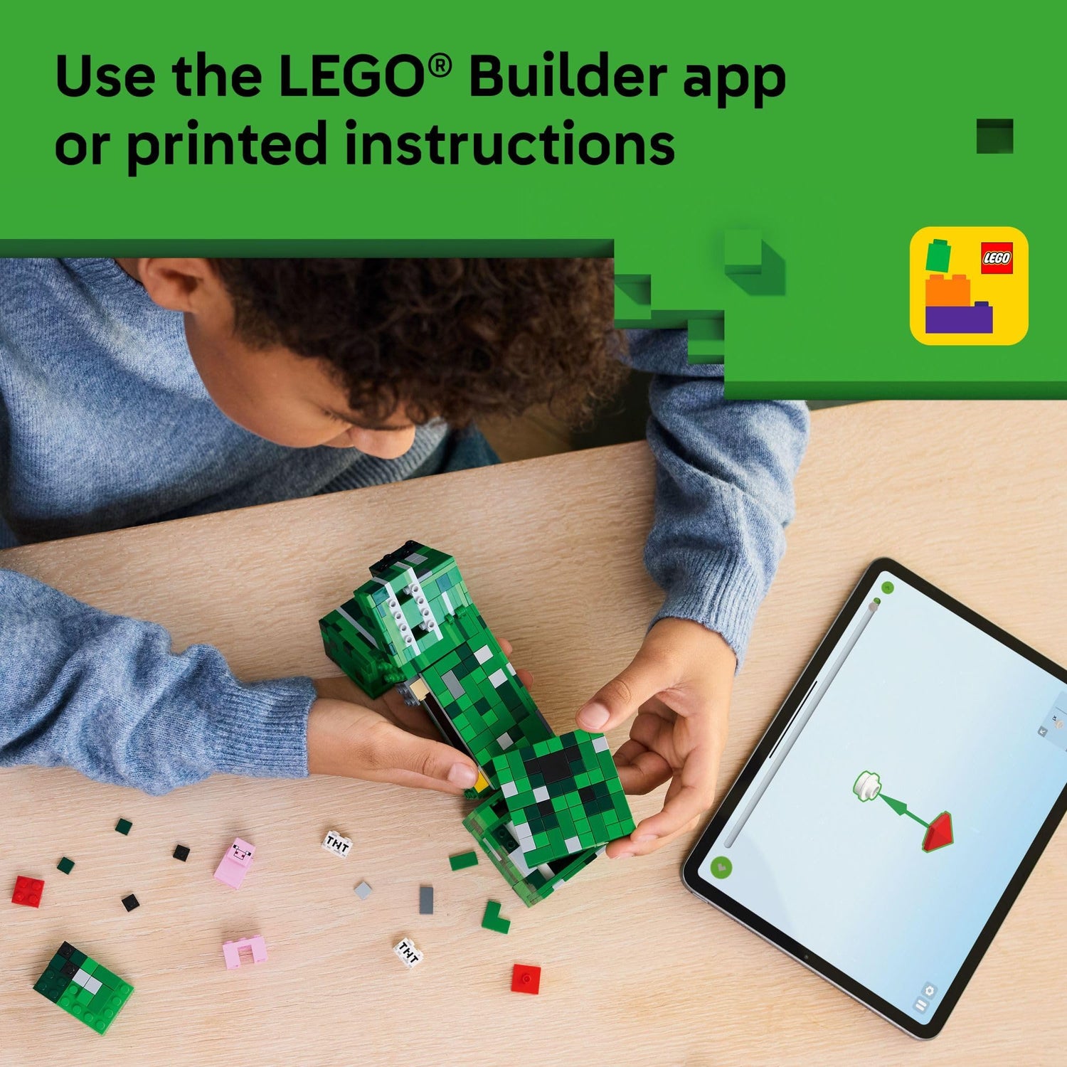 Details: The Creeper is on the move! Young builders 10+ bring an iconic mob to life with the LEGO Minecraft The Creeper (21276) buildable action figure. Kids build a highly detailed, posable Creeper with a moveable head and legs that towers overs its brick-built foes. As kids build, they'll uncover a surprise hidden compartment that conceals a first-version Creeper minifigure and TNT element. Kids can collect and connect the entire range of LEGO Minecraft building sets for even more pretend play possibilities. Digital-savvy builders can enhance their experience using the LEGO Builder app to zoom in, rotate, and track their builds. Contains 665 pieces.