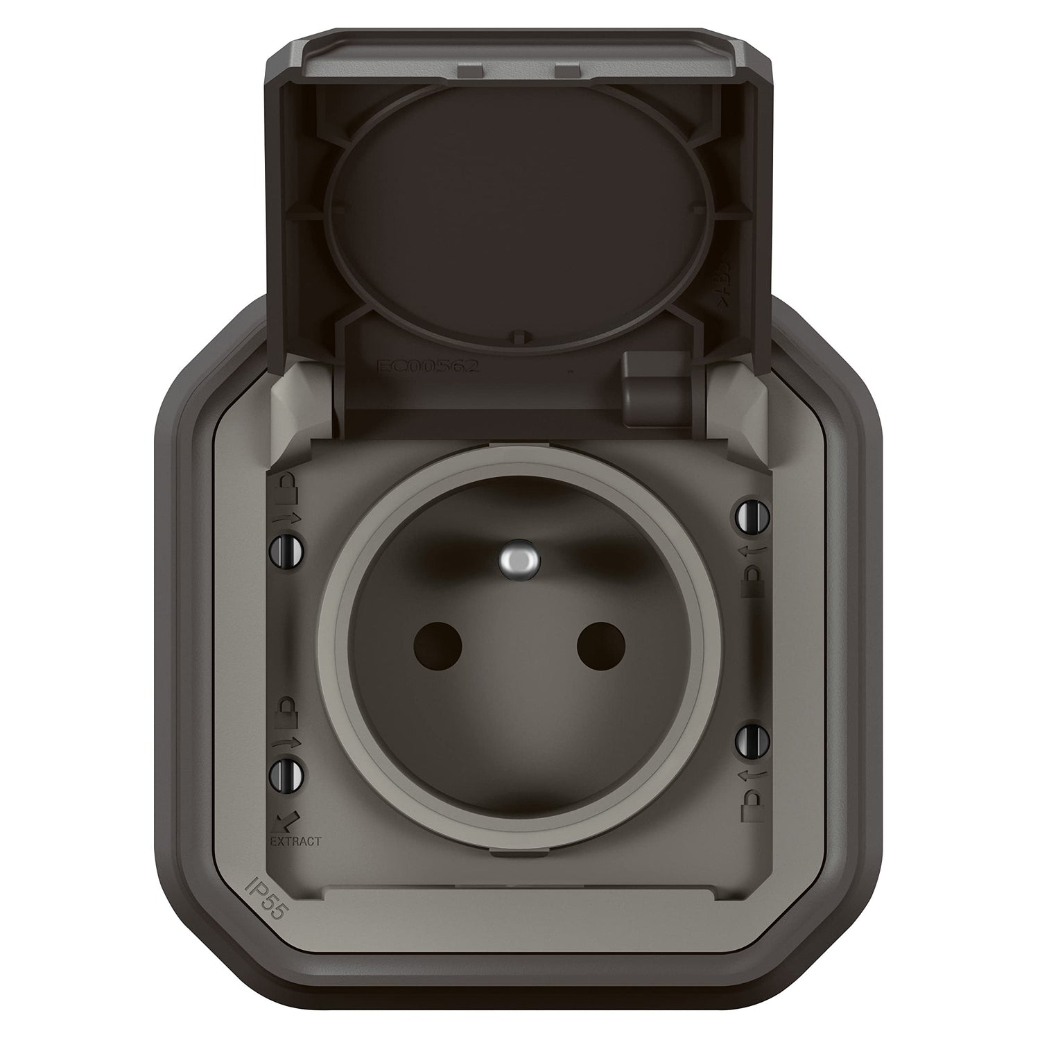 Legrand - IP55 Waterproof Socket with Plexo Earth - 2P+T 16A Socket Complete with Shutter - For Recessed Installation with Claws - Made in France - Anthracite