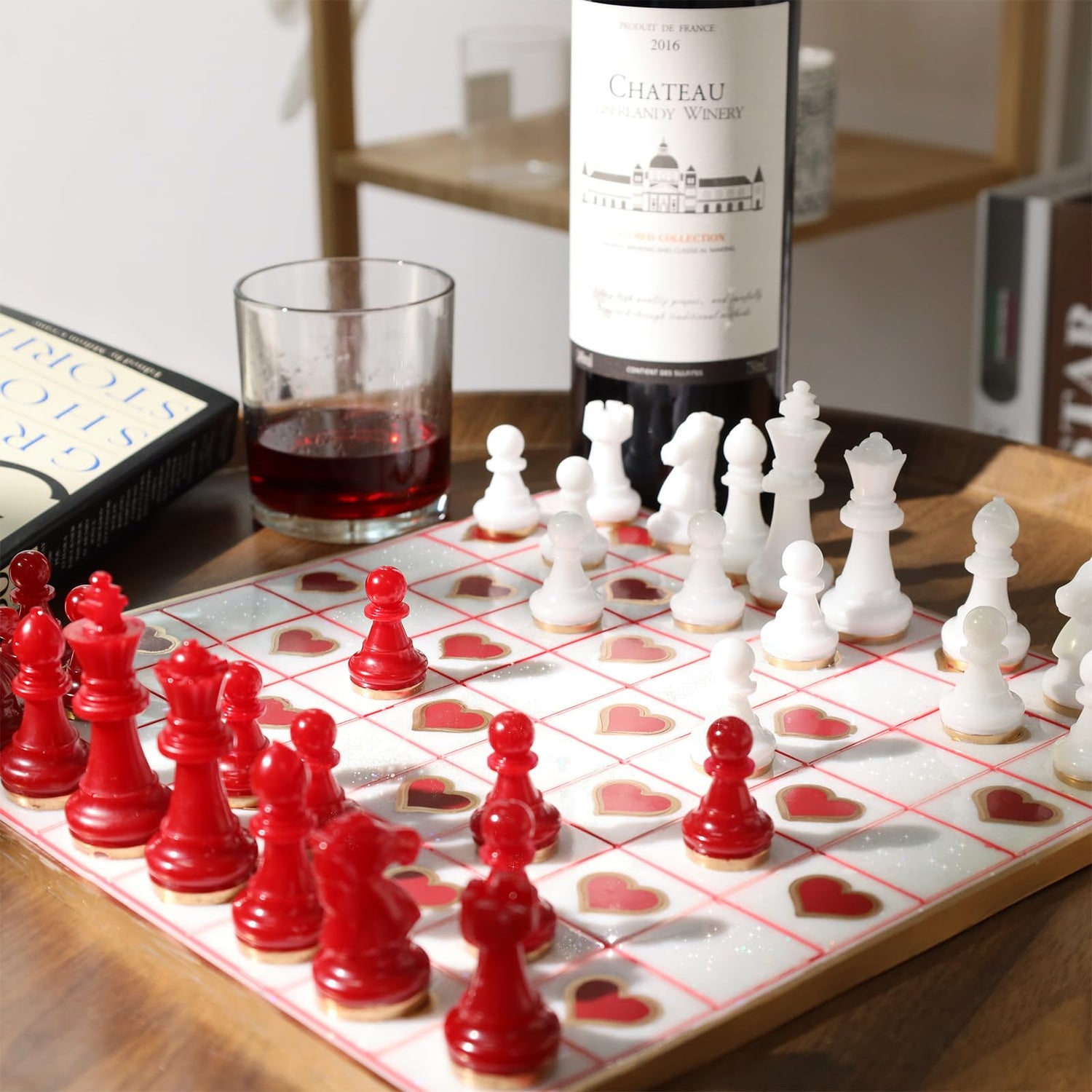 LET'S RESIN Chess Molds for Resin Casting, Upgraded Resin Chess Set Mold with 16 Piece 3D Full Size Chess Checkers & Chess Board Epoxy Silicone Resin Molds, DIY Chess Board Game, Christmas Gifts