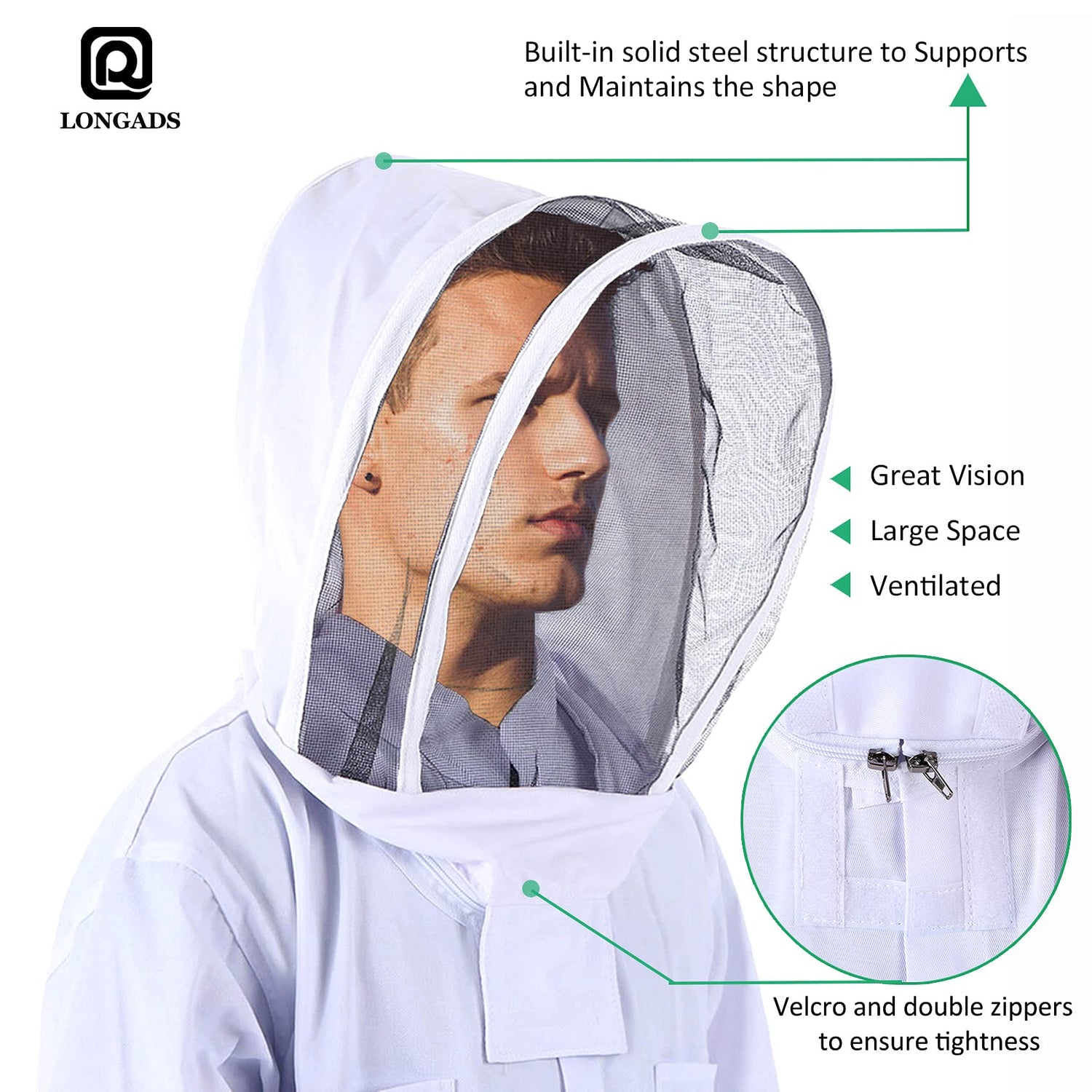 LONGADS Professional Bee Suit for Men Women, Beekeeping Suit Beekeeper Suit with Glove &Ventilated Hood, Multi-Size Bee Outfit for Backyard and Bee Keeper for Bee Keeper Catcher Christmas Costume