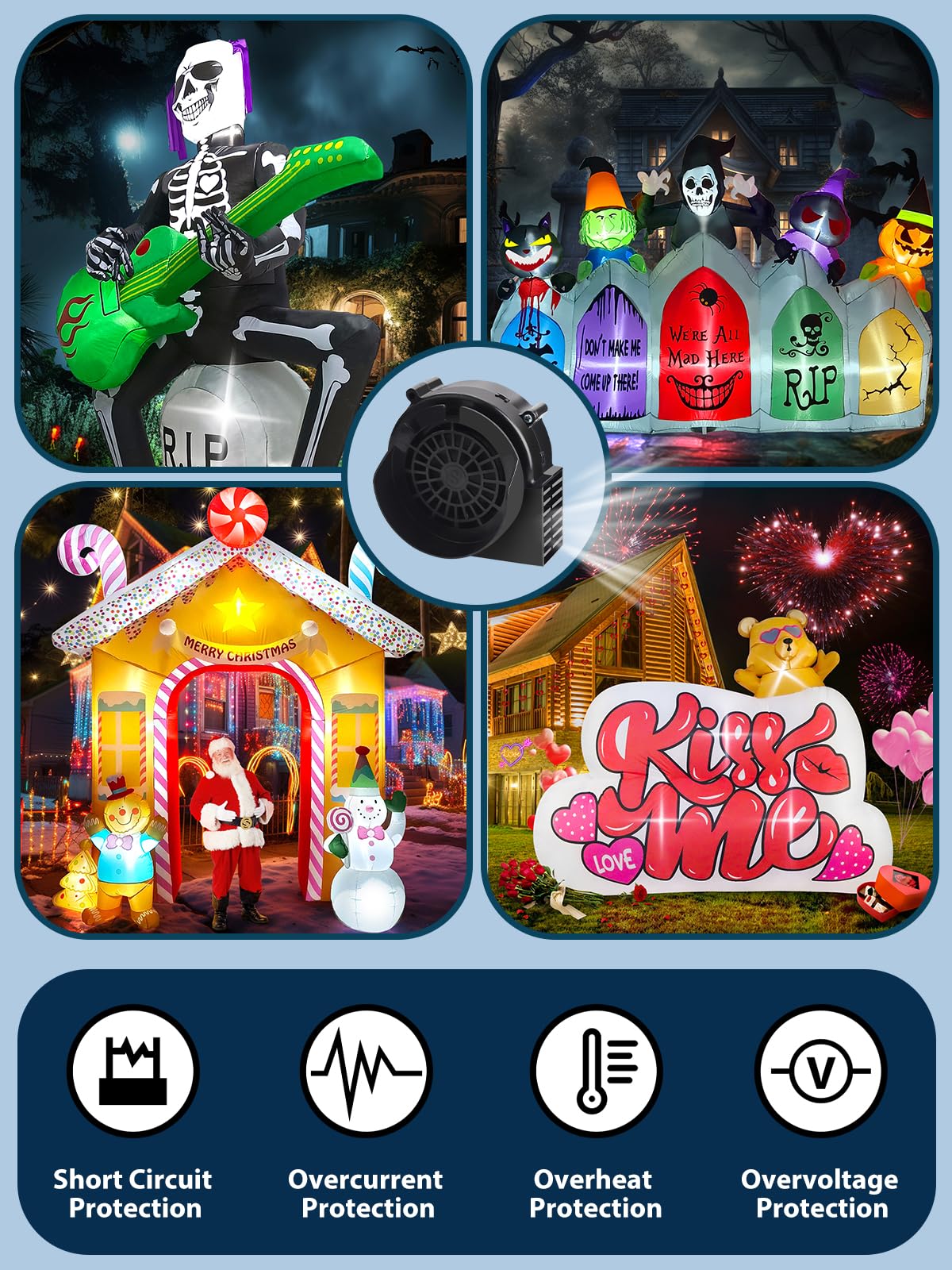 - 【Replacement Inflatables Air Blower】Upgrade your inflatables with our complete replacement inflatable air fan blower kit! Includes a powerful 2.5A replacement blower fan for inflatables, 39ft LED string lights with 10 white LED bulbs, 12V/3A adapter (6.6ft cord), 12 locking pliers, and 3 zip ties. Perfect for all size inflatable decorations—keep your displays bright, secure, and fully inflated!