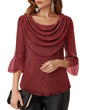 • Designs: Shiny silver threads, a cowl neck, 3/4 ruffled sleeves, and double layers — This women's blouse not only showcase your beautiful curves but also hide minor flaws. Every design element works in harmony to flatter your figure, ensuring you feel as beautiful as you look and making you the shining center of the evening
