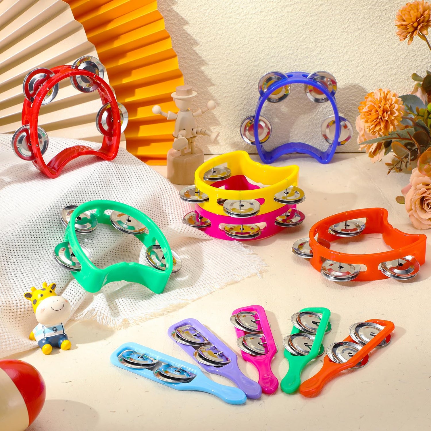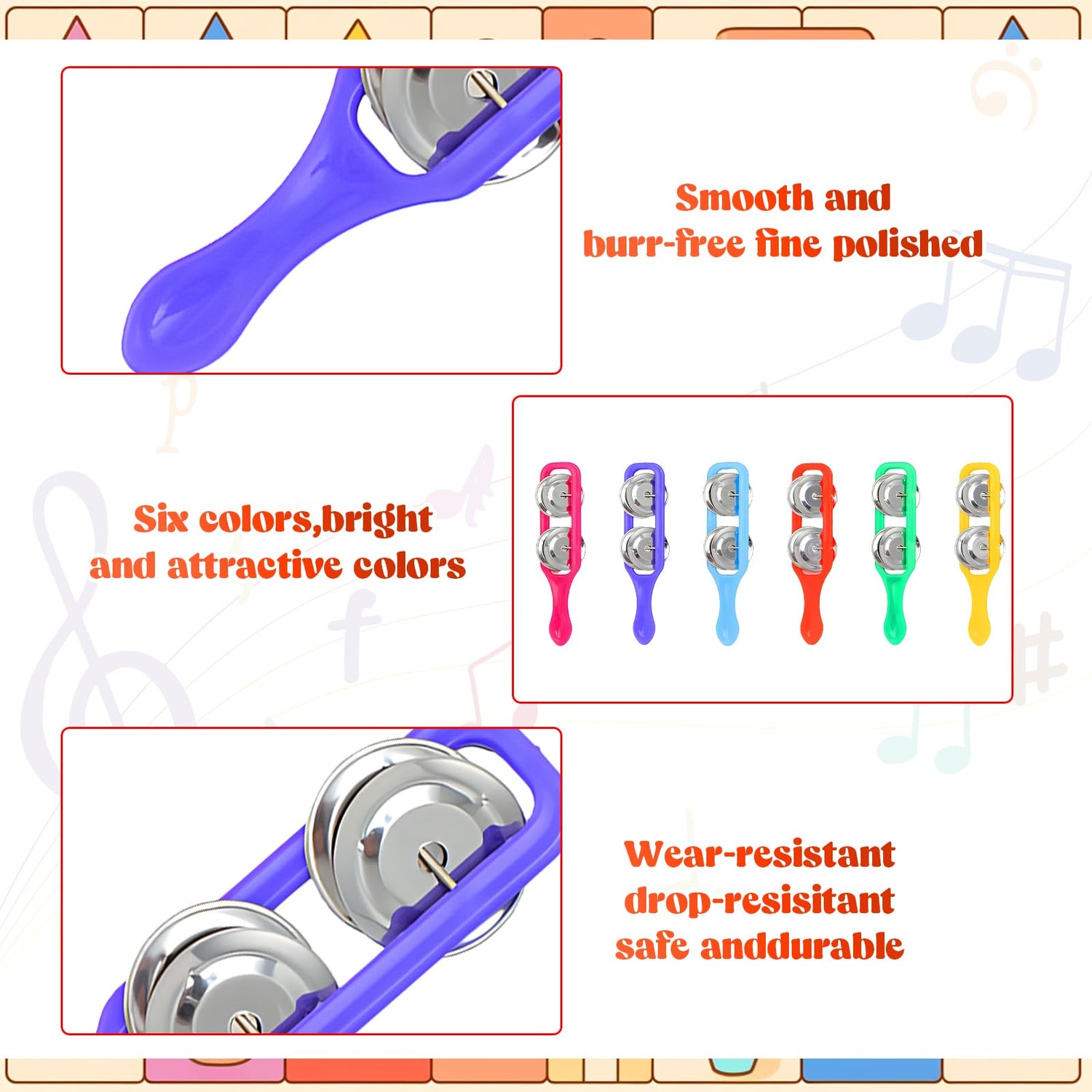 • Rich 72 Piece Tambourine and Cymbals Set: you will receive 36 pieces of tambourines, including red, yellow, blue, orange, pink, green, 6 pieces of each color; 36 pieces of cymbals, including purple, blue, green, orange, yellow and pink, 6 pieces of each color, adequate quantity and bright colors, ideal for music lessons, parties, everyday use and replacement
