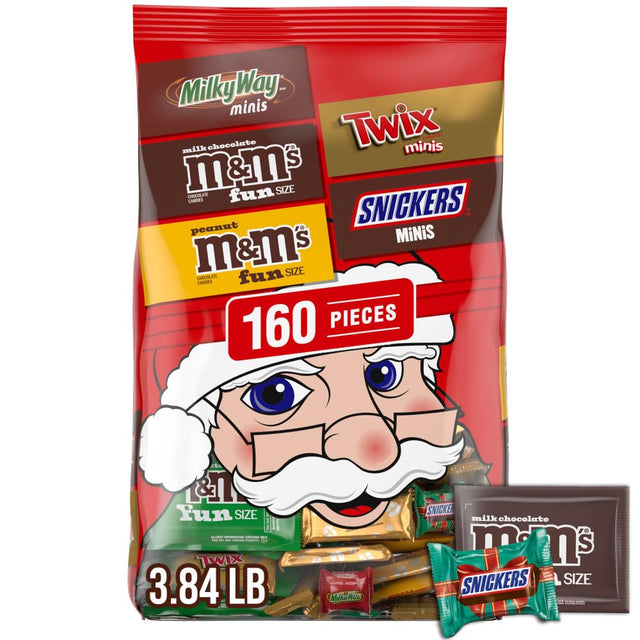• This 160-piece bulk bag assorted chocolate candy variety pack for Christmas includes fun size M&M’S Milk Chocolate, fun size M&M'S Peanut Candy, and SNICKERS, TWIX, MILKY WAY Mini Bars
