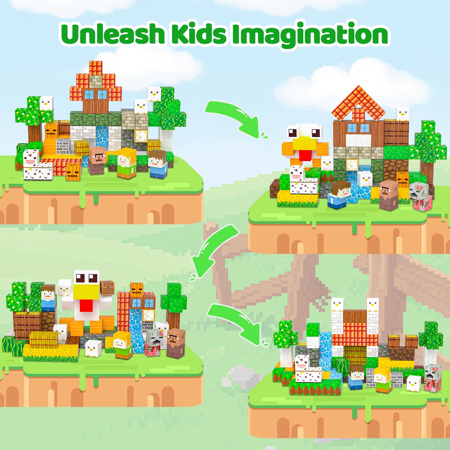- Creativity & Imaginaions: Embark on a magnetic blocks adventure! These magnetic blocks inspire open-ended play, even with included references, kids can build, dismantle, and rebuild freely using their creativity. Our magnetic cubes spark imagination and boost hands-on skills. Play this enjoyable magnetic blocks set with kids at home to strength parent-child relationship. Ideal toys for kids 3+ years old.