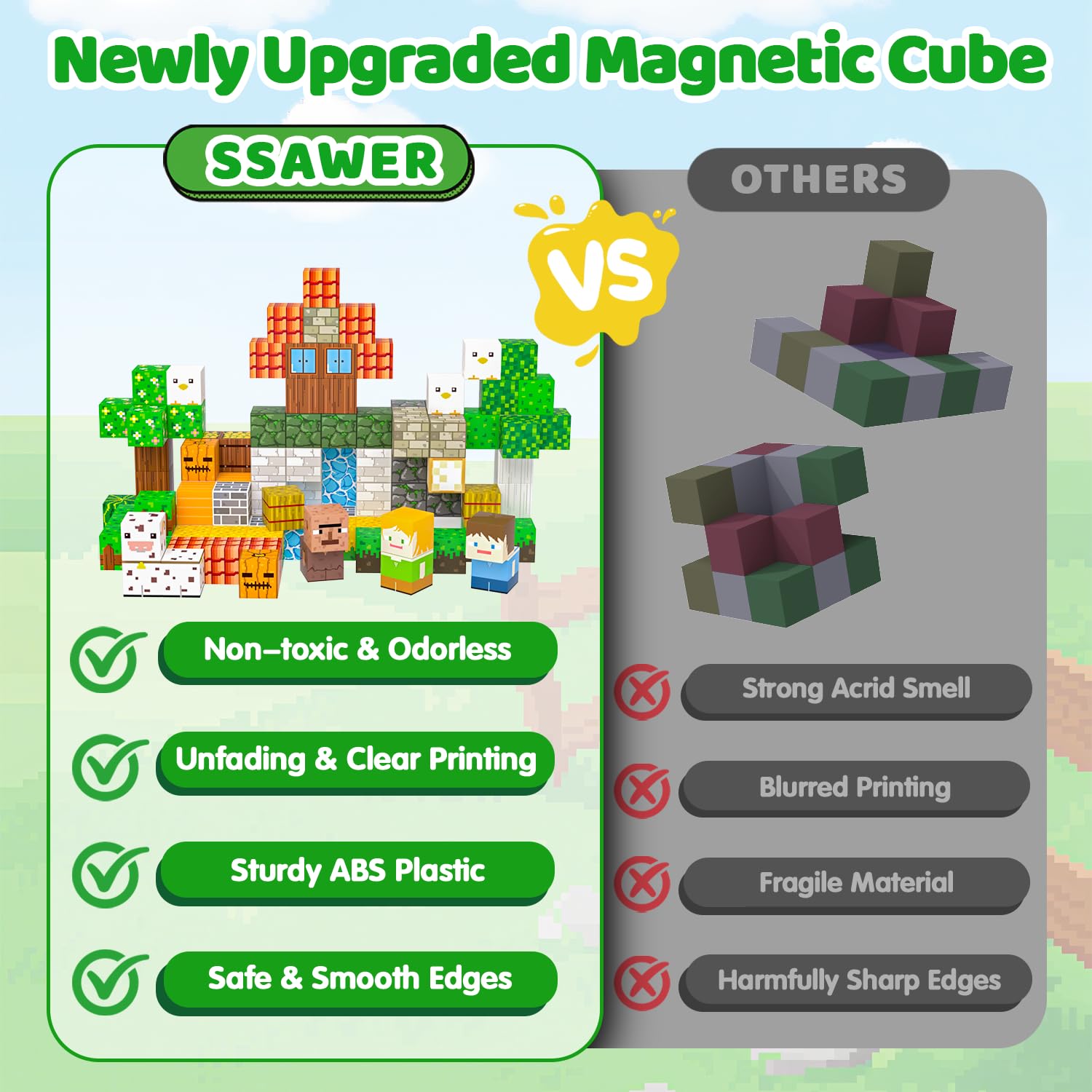 - Premium Quality Material: Meet US toy standard and safety test approved. Our magnetic building blocks are made of durable ABS plastic, embedded with 8 magnetic contact points to enhance magnetic force, perfect for kids of ages 3 4 5 6 7 8 9 10 11 12 to easily stick cubes together and build sturdy structures.