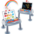 - šØćMulti-Function Painting Paradiseć-This toddler learning table provides a double-sided painting experience, allowing kids to unleash their creativity. The magnetic whiteboard supports watercolor painting and math learning with magnetic letters and colour pen on the whiteboard while stimulating kid's imagination in drawing. The other side of the drawing board is a writing practice blackboard where young kids can hone their writing skills with chalk.