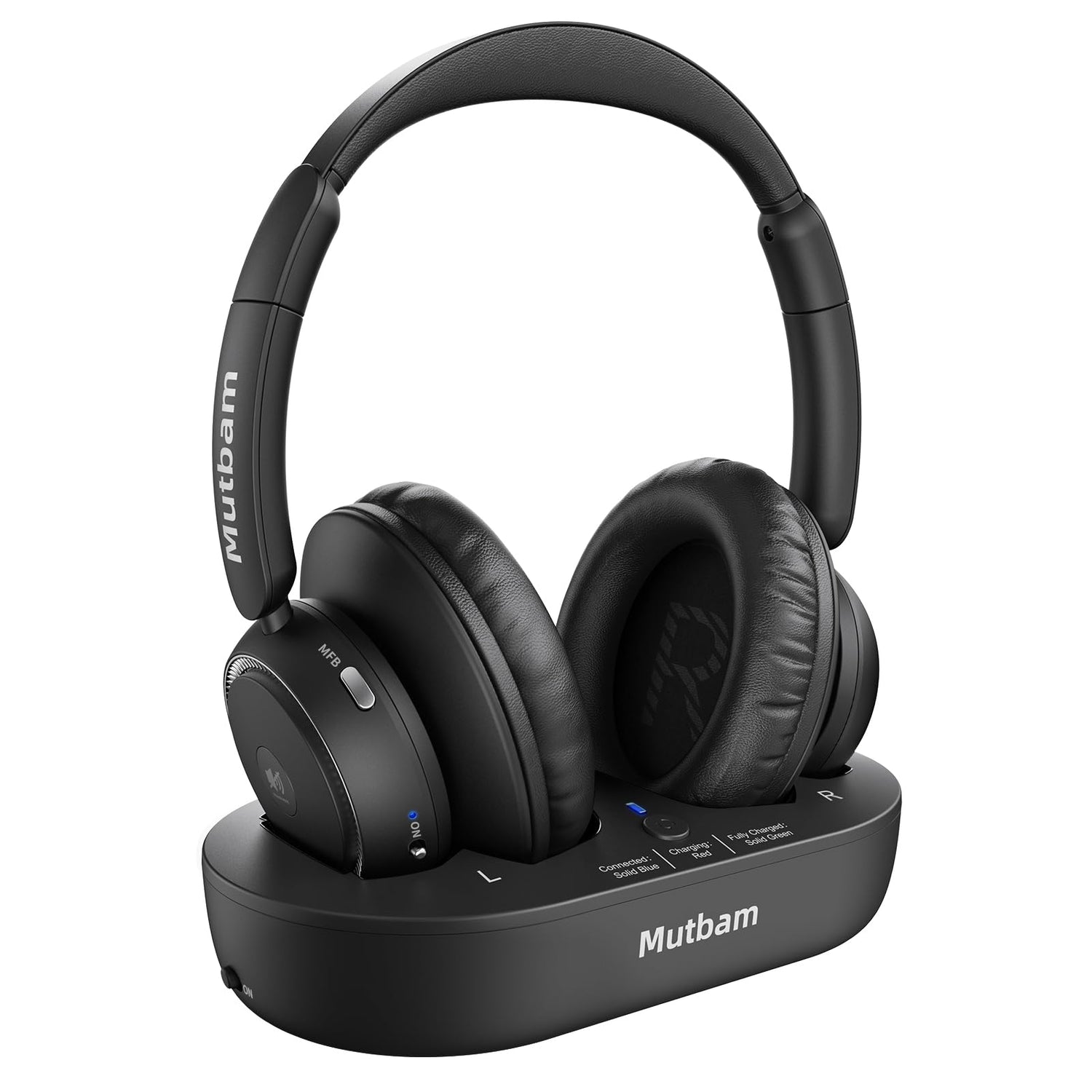 Mutbam Wireless Headphones for TV, TV Headphones Wireless for Seniors, 65hrs Worktime tv Bluetooth headsets with Transmitter Charging Base, Without Delay, Gift for The Elderly & Hard of Hearing