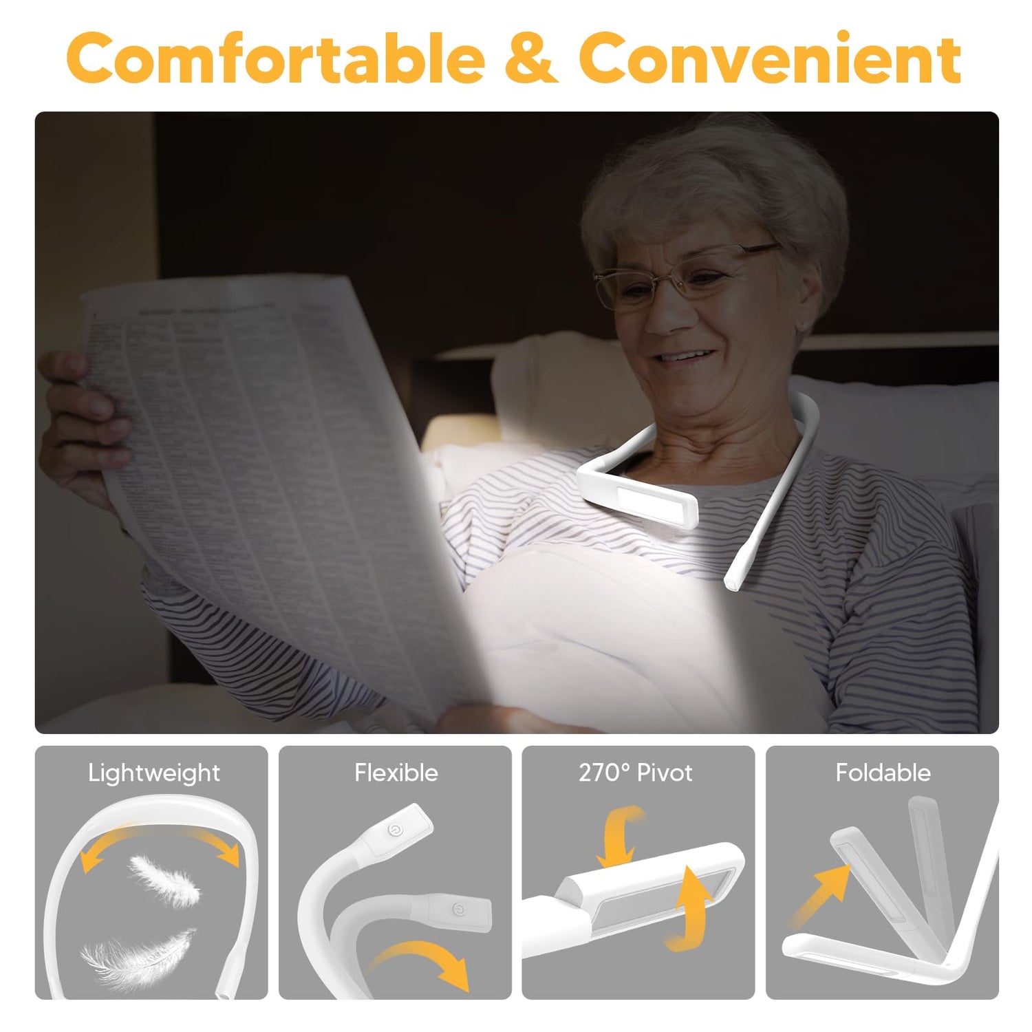 - Comfortable & Versatile: This lightweight, ergonomic neck light features flexible arms and a rotatable head, directing bright light precisely where needed for night reading, crochet, knitting, sewing, crafts, repairing, camping, fishing, or dog walking