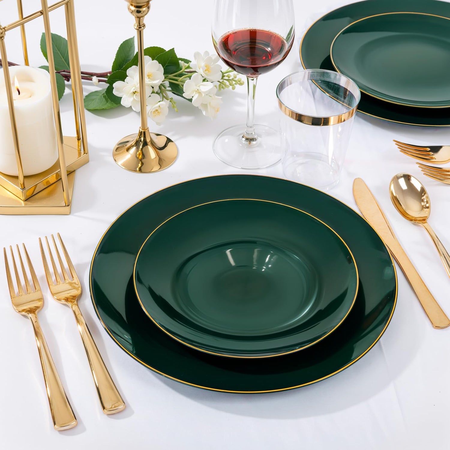 - Elegant Design - The green plastic plates feature luxurious gold rim, adding a touch of sophistication to any table setting. The generous 10.25-inch size dinner plate accommodates hearty portions while maintaining a stylish, upscale look, perfect for elevating casual meals or formal events