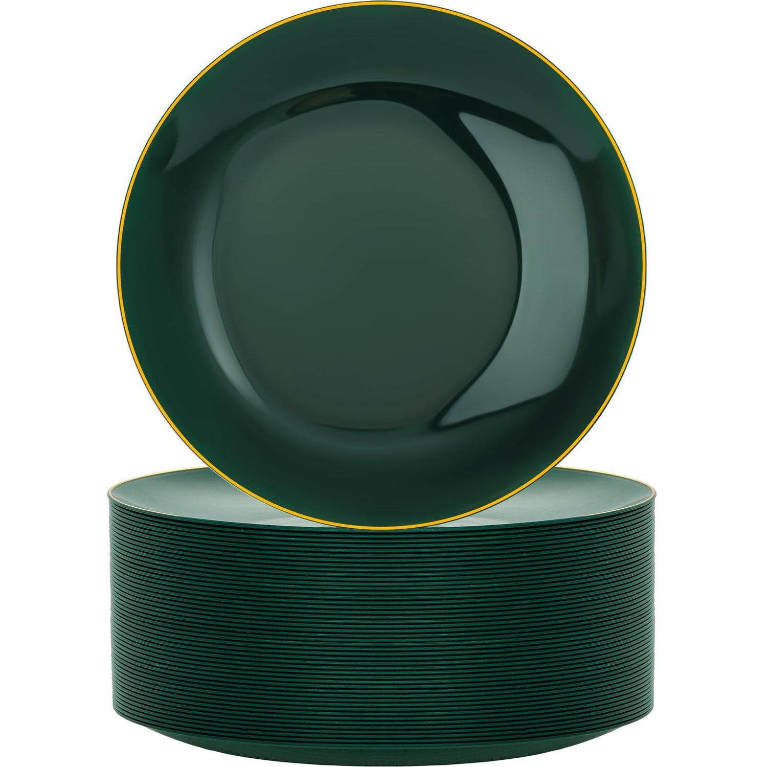- Premium Quality - Crafted from heavyweight, BPA-free plastic, these 10.25-inch green plates with gold rim resist bending, cracking and snapping. The 100% food-grade material of these green and gold plates ensures a safe, durable dining experience for family and guests, ideal for daily use or large gatherings