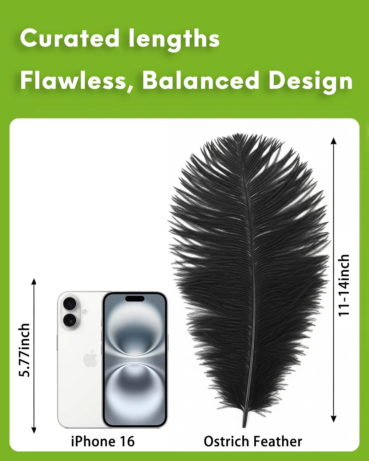 NEWONG 30pcs Black Ostrich Feathers Natural Bulk 11-14inch(28-35cm) Vase Craft Wedding Home Party Centerpieces Christmas Day Decoration