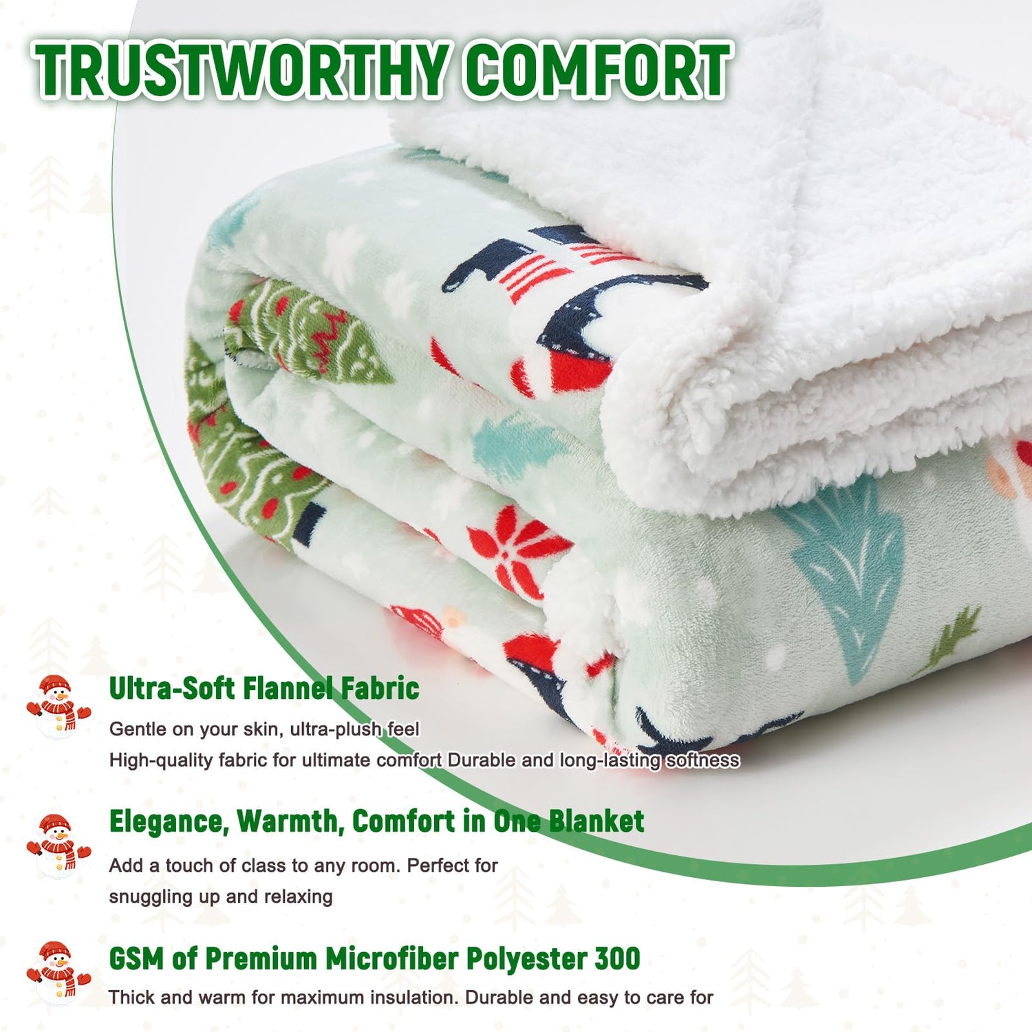 • REVERSIBLE DESIGN SOFT & COMFORTABLE: Wrap yourself in cloud-like comfort with our reversible christmas throw blanket. One side features 220GSM cozy flannel, while the other is lined with 180GSM plush Sherpa fleece—both designed to be incredibly soft against your skin. Perfect as a fleece blanket, sherpa blanket, or plush christmas blanket, this reversible design ensures year-round warmth and style. Ideal for use as a throw blanket for Christmas or everyday snuggling