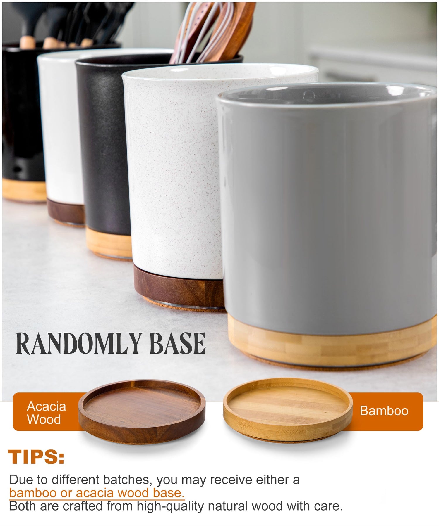• STABLE & LASTING: Made of premium ceramics, this ceramic utensil holder is clearly heavier than ones made of other materials, steadily stands on your countertop. Natural coarse ceramic texture, reflecting a low profile and soft luster, suitable for modern or farmhouse kitchens, withstands long-time daily uses.