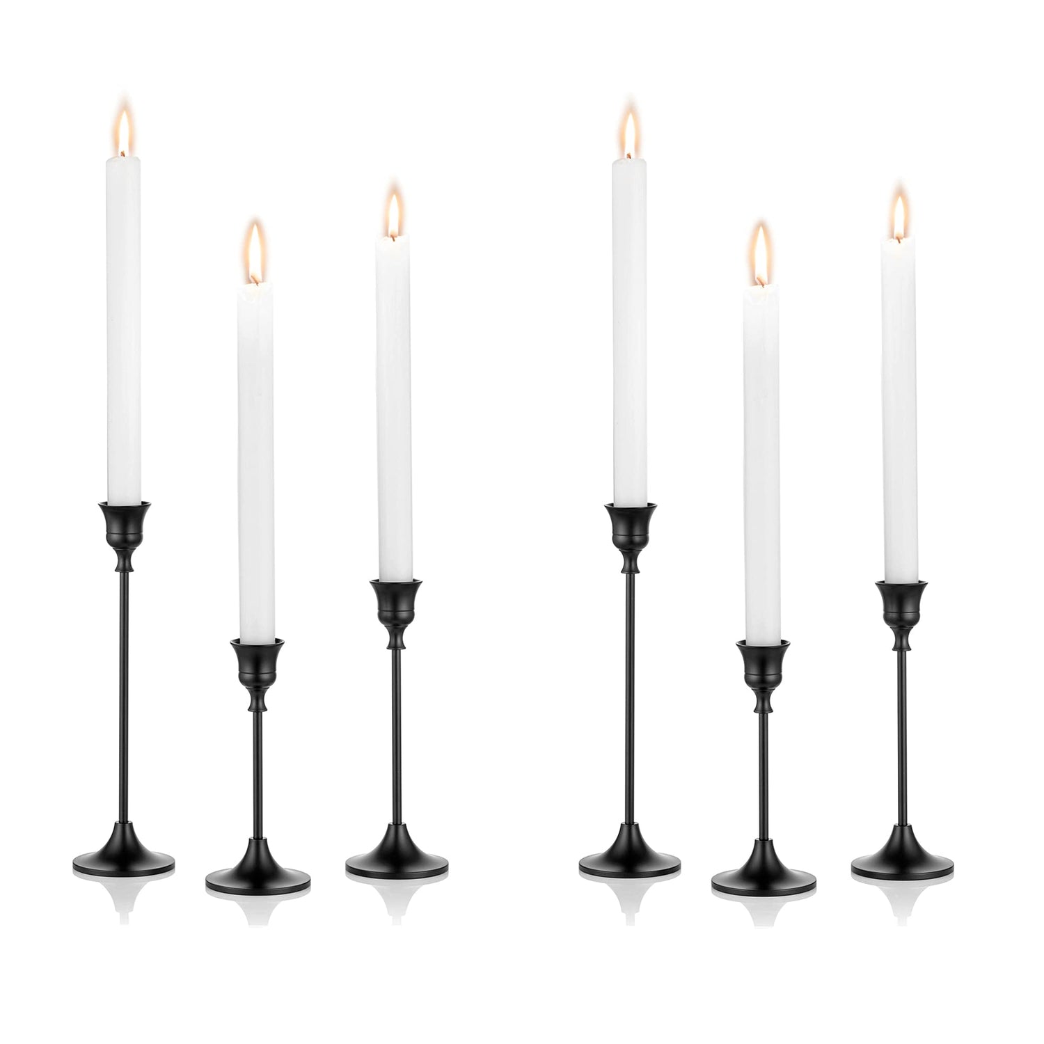• APPLICATIONS: This black candle holders set is suitable for candle sticks and taper candles. They can be placed in living room, bedroom, bar, coffee table etc. It will help you to create a romantic atmosphere for wedding, home decor, ceremony and anniversary.