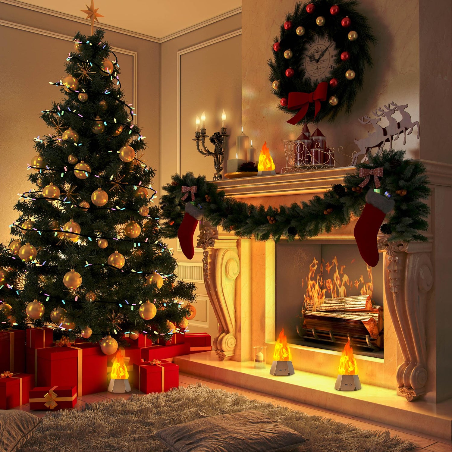 Ollcuz LED Flame Lights, Rechargeable Battery Flameless Candles, Fake Fire with Flickering Flame, LED Night Light for Kids Bedroom Outdoor Camping Party Bar Table Christmas Decorations, 2 Pack
