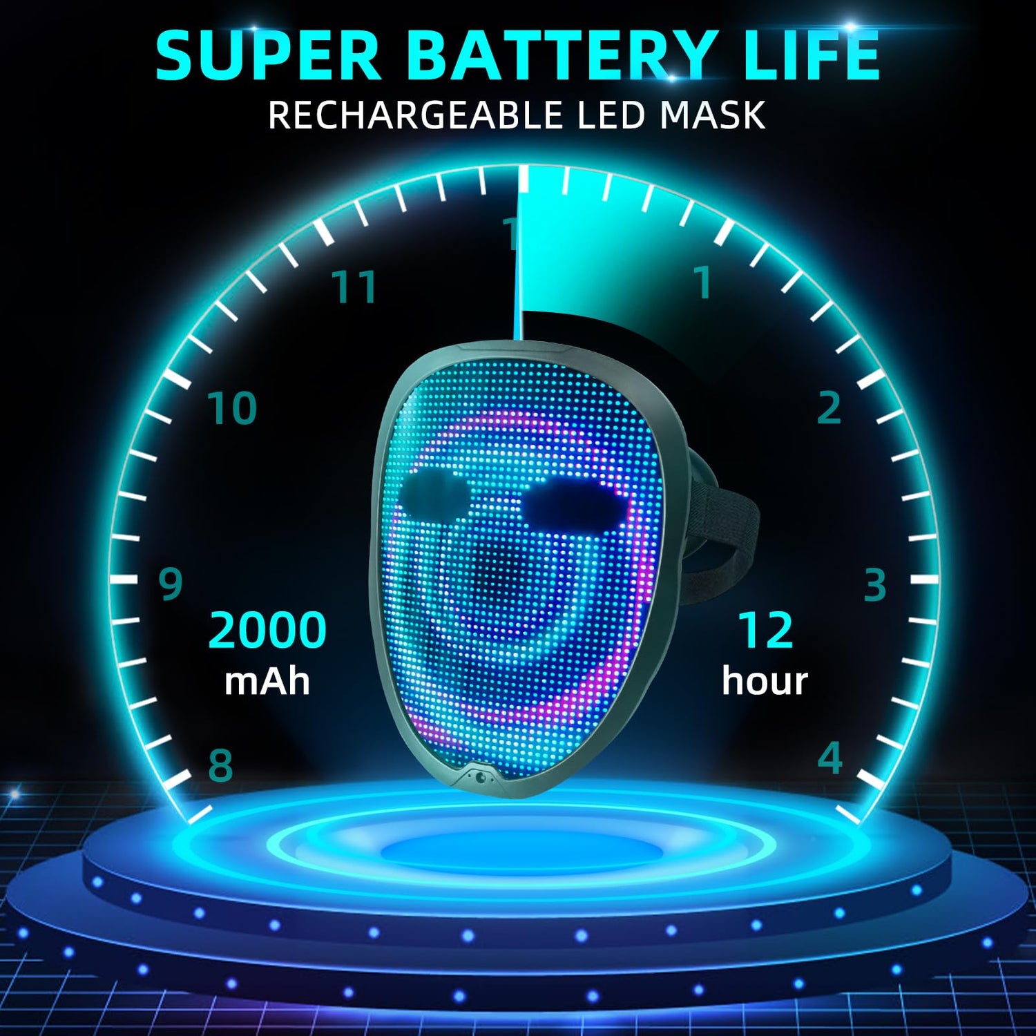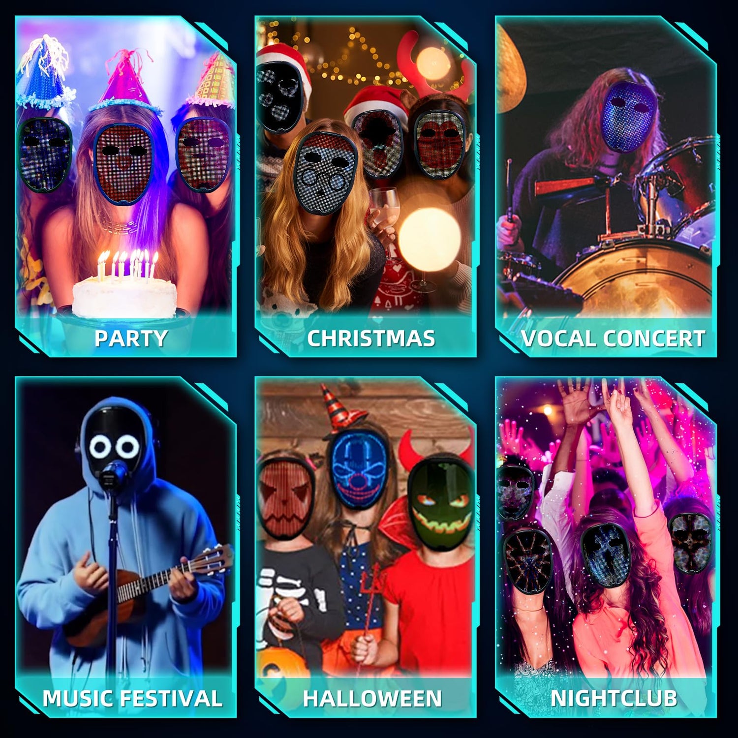 - Perfect for Gifting - This mask makes an excellent gift for all and can adds excitement to Halloween, Christmas, music festivals, birthdays, and New Year's Eve celebrations. If you wear it with your friends in these occasions, turn your face into a beat machine and groove to music beats, bring the party wherever you go with over 2,000 LEDs lighting up your every expression, Your face will be the life of the party, literally.