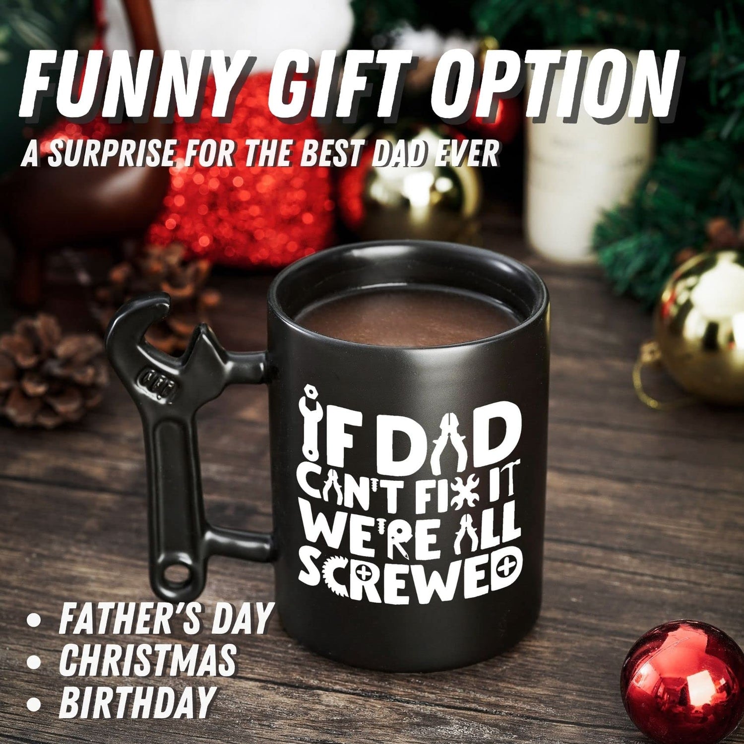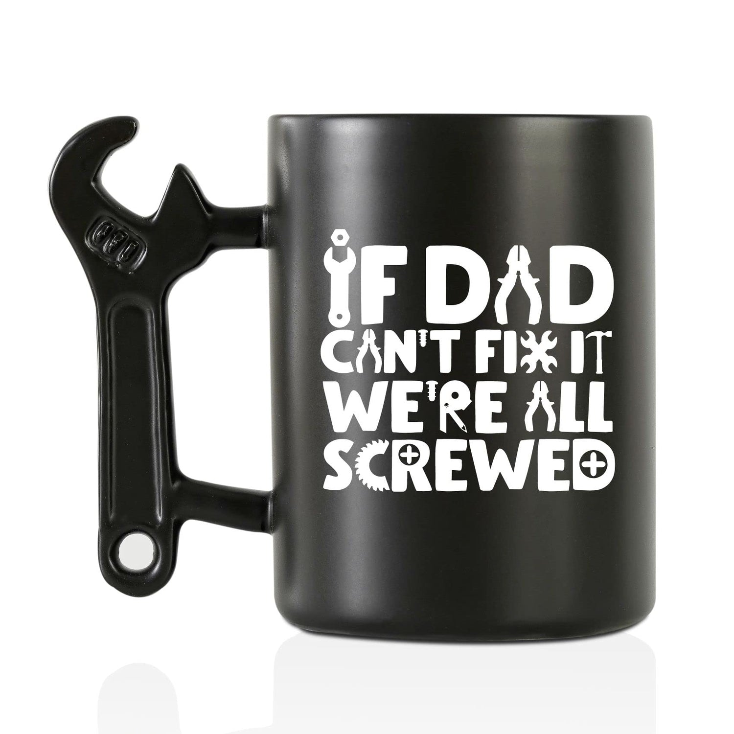 Onebttl Coffee Mug With Wrench Spanner Handle - Dad Gifts From Daughter and Son, 13.5oz Funny Ceramic Mug for Father's Birthday, Father's Day, Christmas - Dad Can Fix