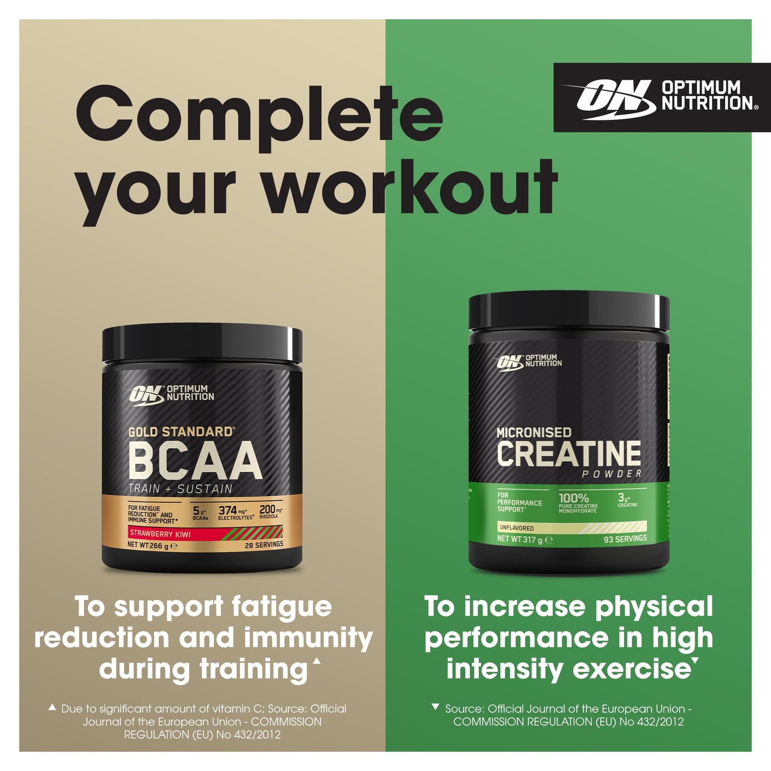 Details: OPTIMUM NUTRITION'S GOLD STANDARD 100% Whey uses pure Whey Protein Isolates as the primary ingredient. Combined with ultra-filtered whey protein concentrate, each serving provides 24 grams of all-whey protein and 5.5 grams of naturally occurring Branched Chain Amino Acids (BCAAs) which are prized by athletes for their muscle building qualities. With more than 20 tempting flavors to choose from, ON GOLD STANDARD 100% Whey gives you plenty of ways to keep workout recovery interesting. Search "ON Apparel TRUE STRENGTH" to see our new ON clothing line!