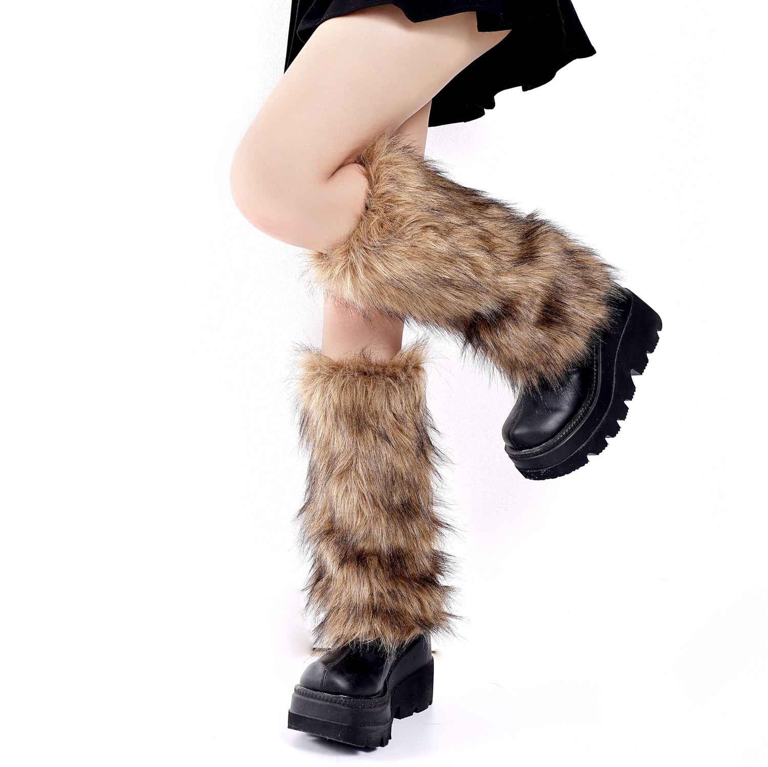 OSPNIEEK Fur Leg Warmers, Furry Leg Warmers for Womens, Faux Fluffy Leg Warmer, Soft Fuzzy Leg Warmer Boot Cuffs Covers for Winter Warm, Christmas, Halloween, Cosplay Party (Brown)