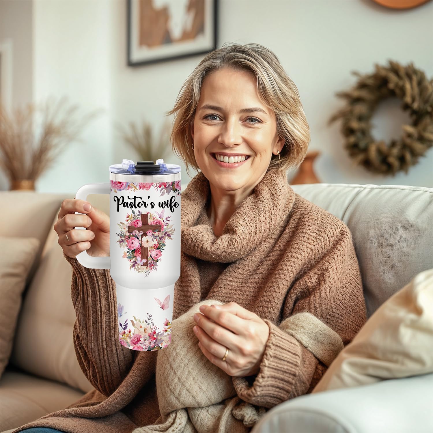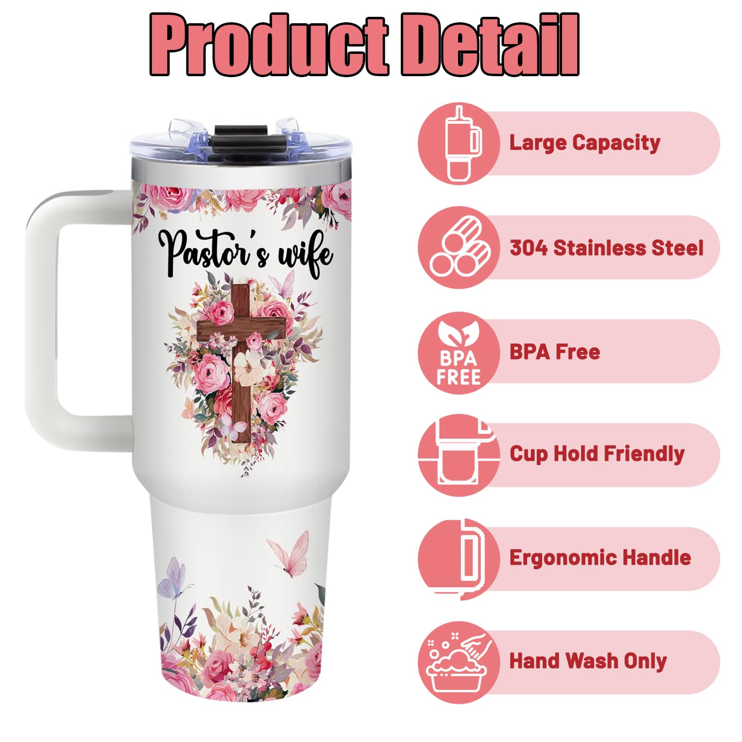 Pastor Appreciation Gifts - Pastor Wife Tumbler with Handle - 40oz Stainless Steel Travel Mug Insulated Coffee Cup, Pastor Gifts for Women, Appreciation Gift for Pastors Wife Birthday, Christmas