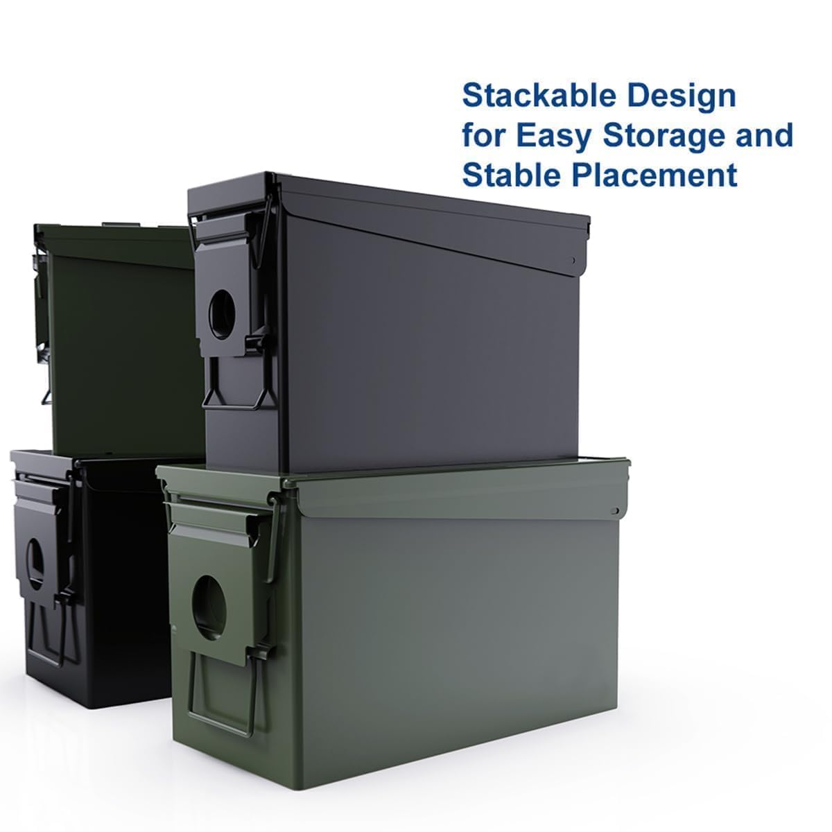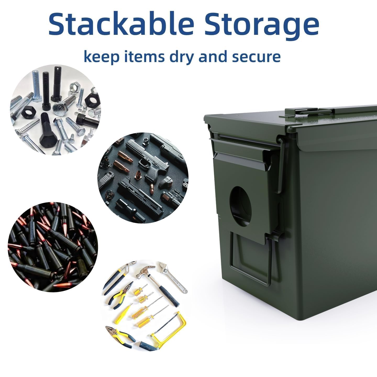 - ✅【Portable & Convenient Design】Featuring a sleek, military-grade design, this ammo can is both rugged and portable. It comes equipped with a hinged lid and locking latch, plus a flat-folding handle for easy and comfortable transport. Its compact size makes it perfect for convenient storage on a shelf, in a drawer, or right next to your bed.