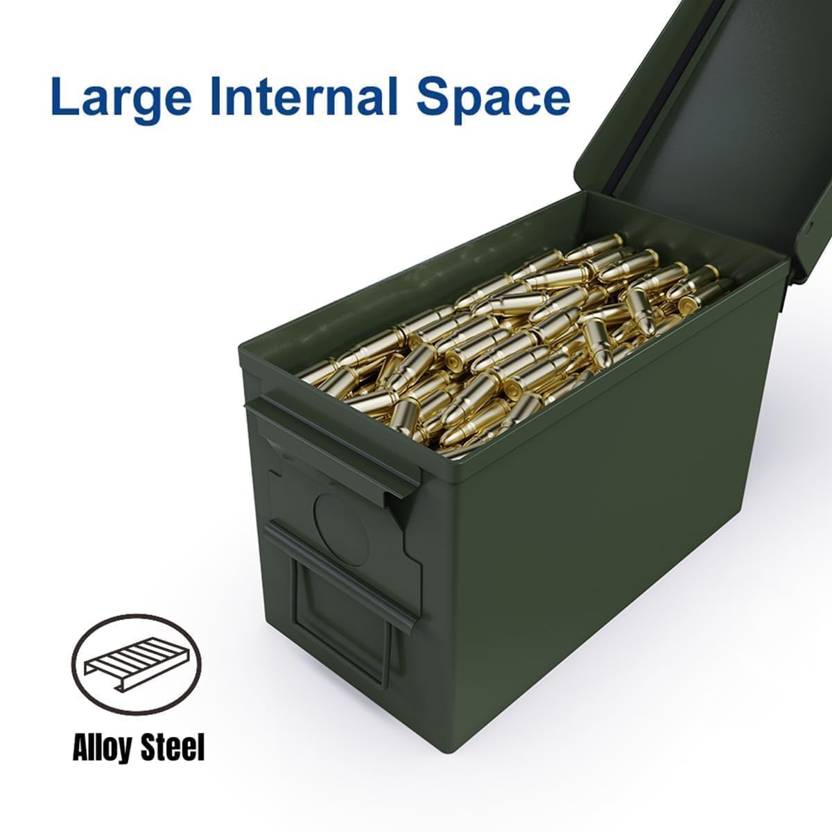 - ✅【Compact & Efficient Storage】50 Cal metal ammo case Interior dimensions: 7.4"x11.7"x6.0" , exterior dimensions: 7.5"x11.8"x6.1",Includes 1 Desiccant Pack , When you seal the can shut, moist air trapped inside can harm your belongings. A desiccant pack will absorb all that moisture for you!