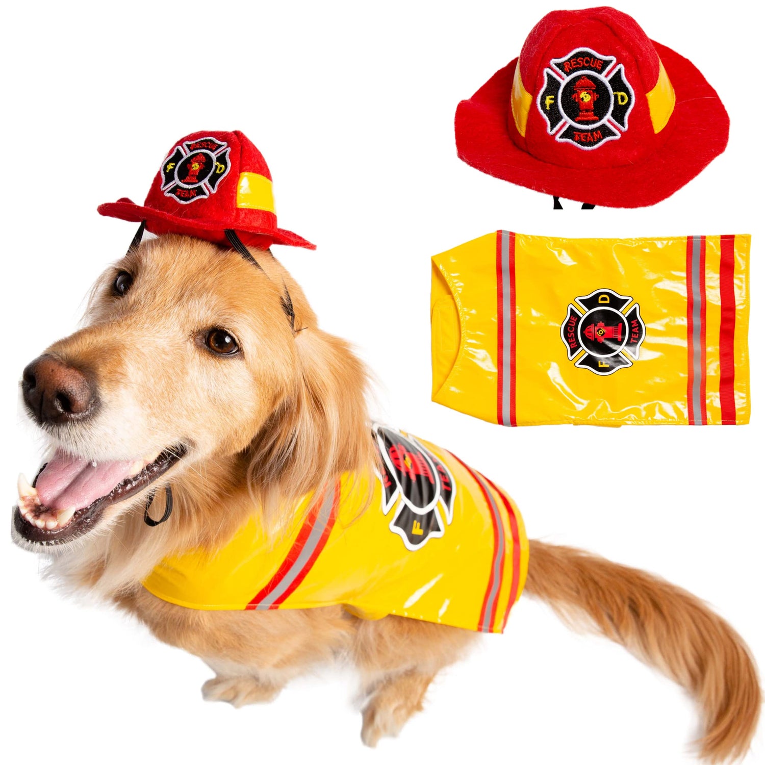 Pet Krewe Large Dog Firefighter Costume -Funny Halloween Pet Fireman Outfit Costumes for Fits Small, Medium, Large & Extra Large Pets - Perfect for Halloween, Christmas Holiday, Parties, Photoshoots