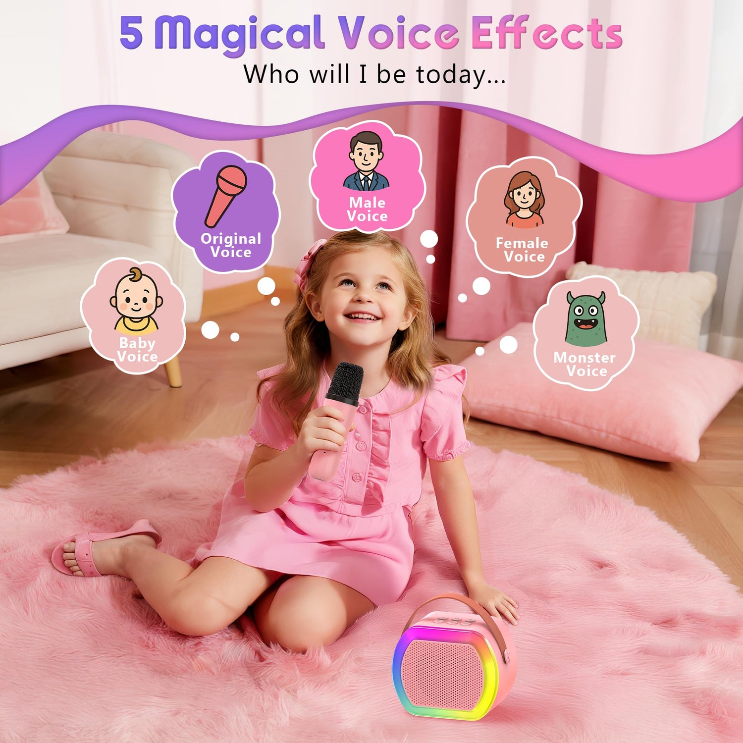 - [Cute & Compact] - This wireless karaoke microphone fits in your backpack ,Comfortable handle sized for small hands; quick move from bedroom concerts to backyard dance-offs ,This portable Bluetooth speaker and kids karaoke machine for Parties ,Birthday ,Meeting ,Classroom ,Family Activities ,toys for girls/boy—fun without the bulk.