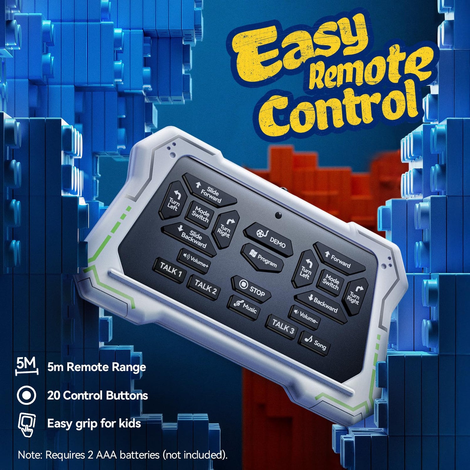• ใ€๐‘๐ž๐ฆ๐จ๐ญ๐ž ๐‚๐จ๐ง๐ญ๐ซ๐จ๐ฅ ๐š๐ง๐ ๐†๐ž๐ฌ๐ญ๐ฎ๐ซ๐ž ๐’๐ž๐ง๐ฌ๐ข๐ง๐ ใ€‘This robot can be controlled by infrared controller. With gesture sensing, kids can guide the toy simply by moving their handsโ€”turn left/right, slide and walk forward/backward. Itโ€™s an exciting way to keep little ones engaged, active, and smiling.