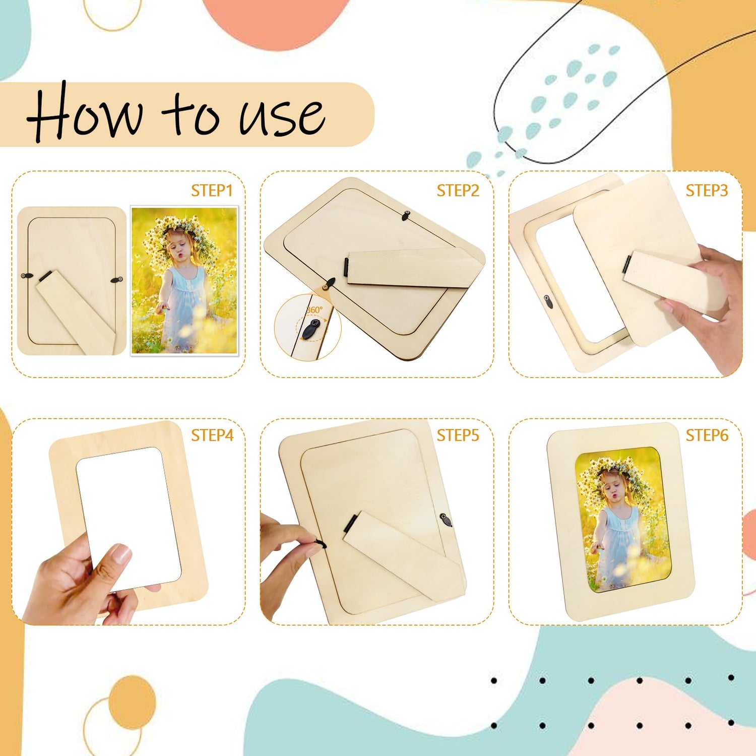 - Quality Material: These blank unfinished wooden frames are made of high-quality solid wood that is sturdy and holds up well, smooth surface and rounded edges, odorless and sturdy, not easy to break, nice to touch without the distressing scratches or burrs, suitable for photos or cards with a length of 5.5" to 6.29" and a width of 3.54" to 4.33"