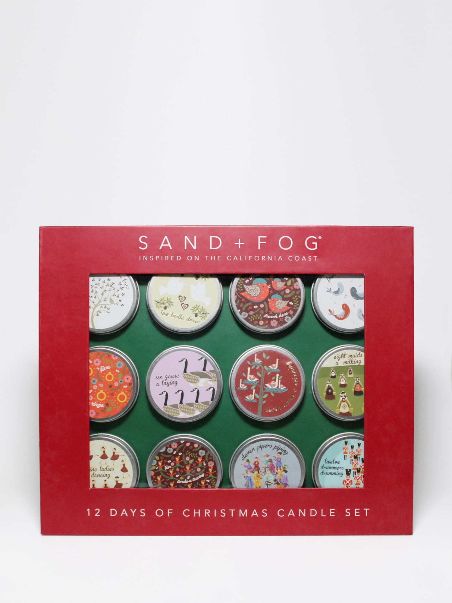 Sand + Fog - 12 Days of Christmas Candle Set - Winter Pine, Apple Cider, Cinnamon Noel, Balsam Cedar, Cinnamon Vanilla, Eucalyptus Fir, Frazier Fir, Golden Nutmeg, Holiday, Juniper Berry, Winter White