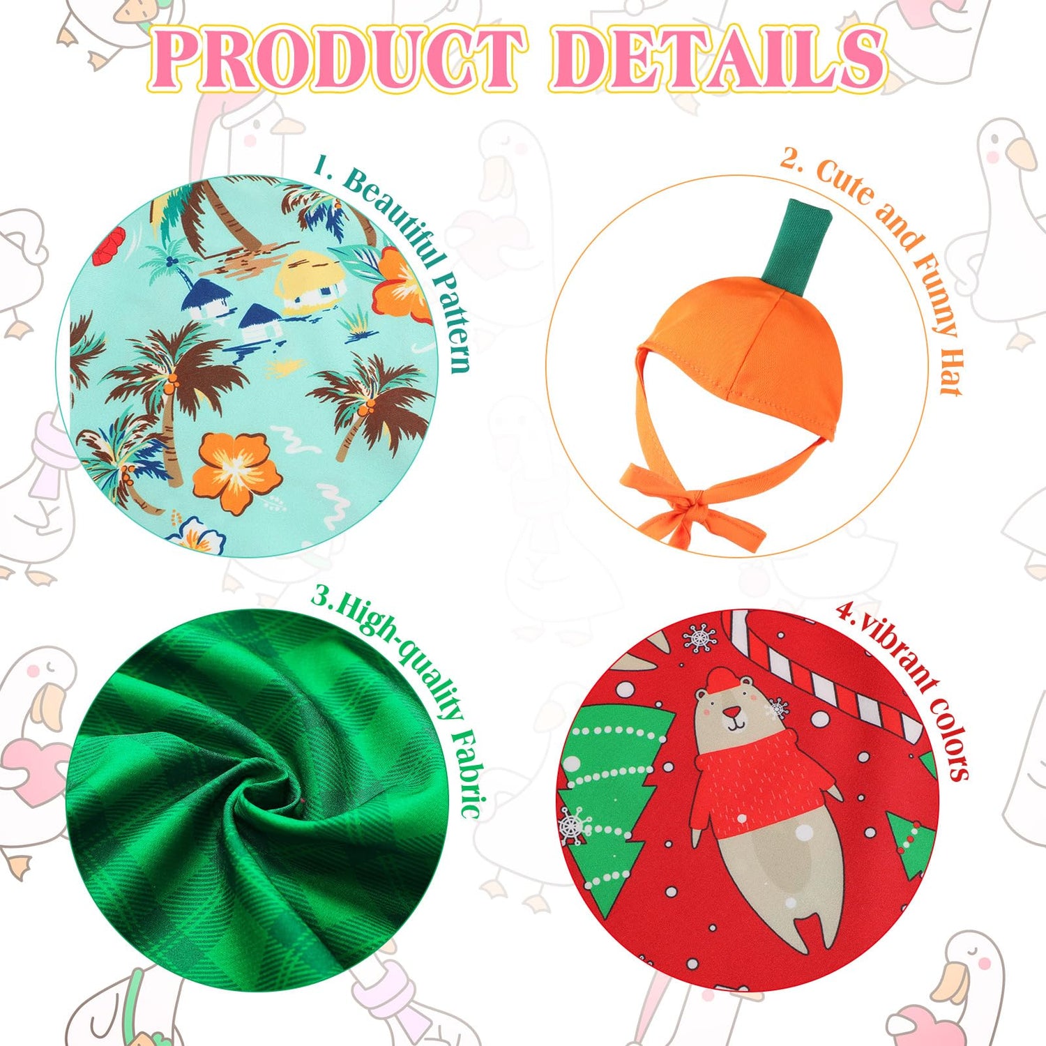 - Classic Festival Theme Design: each goose outfit is designed using iconic festival elements and colors: valentines red love hearts, green plaids, red blue white stripes, Easter bunnies, pumpkins, turkeys, Christmas trees, and beach coconuts; They are designed into an adorable and cool looking suits or shirts, paired with matching accessories like hats or sunglasses, make your geese eye catching decor, ideal for any celebration or just everyday charm