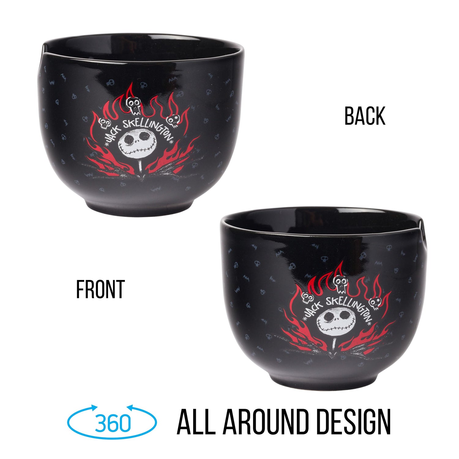 - JACK SKELLINGTON: Black ramen bowl features Jack Skellington across the front and spooky icons from the classic Nightmare Before Christmas film.