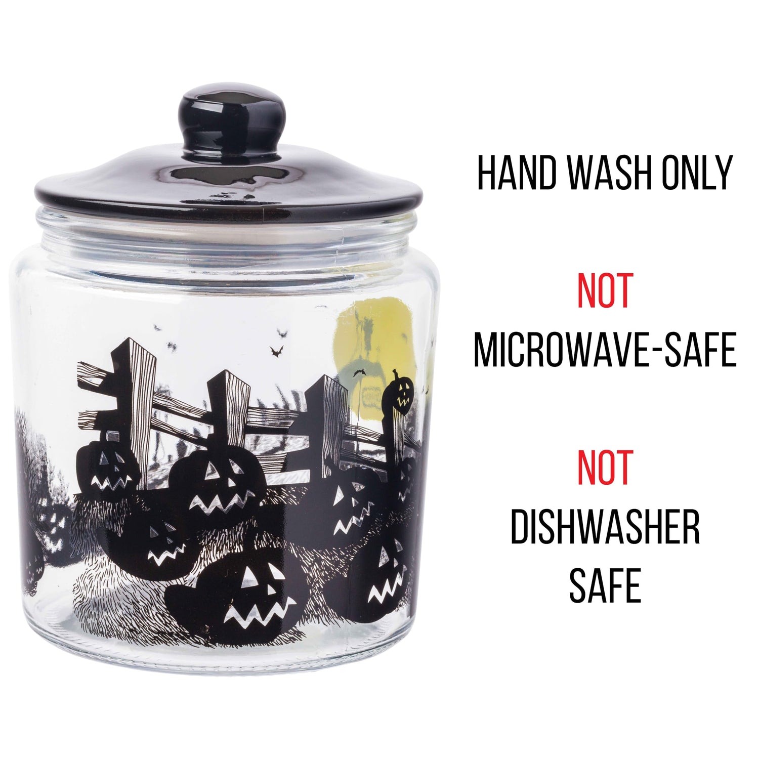 Silver Buffalo Disney Tim Burton Nightmare Before Christmas Moon Hill Graveyard Scene Jack Skellington and Sally Glass Cookie Snack Candy Jar with Lid (Small)