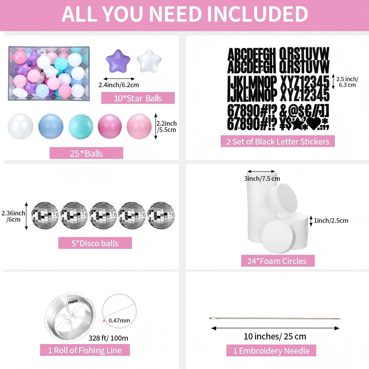 - Singer Party Decorations: you can expect to get 25 balls, 10 star shaped balls, 5 disco balls, 24 foam circles, an embroidery needle, 2 sets of letter stickers, and a roll of fishing line; This is a complete DIY package for you