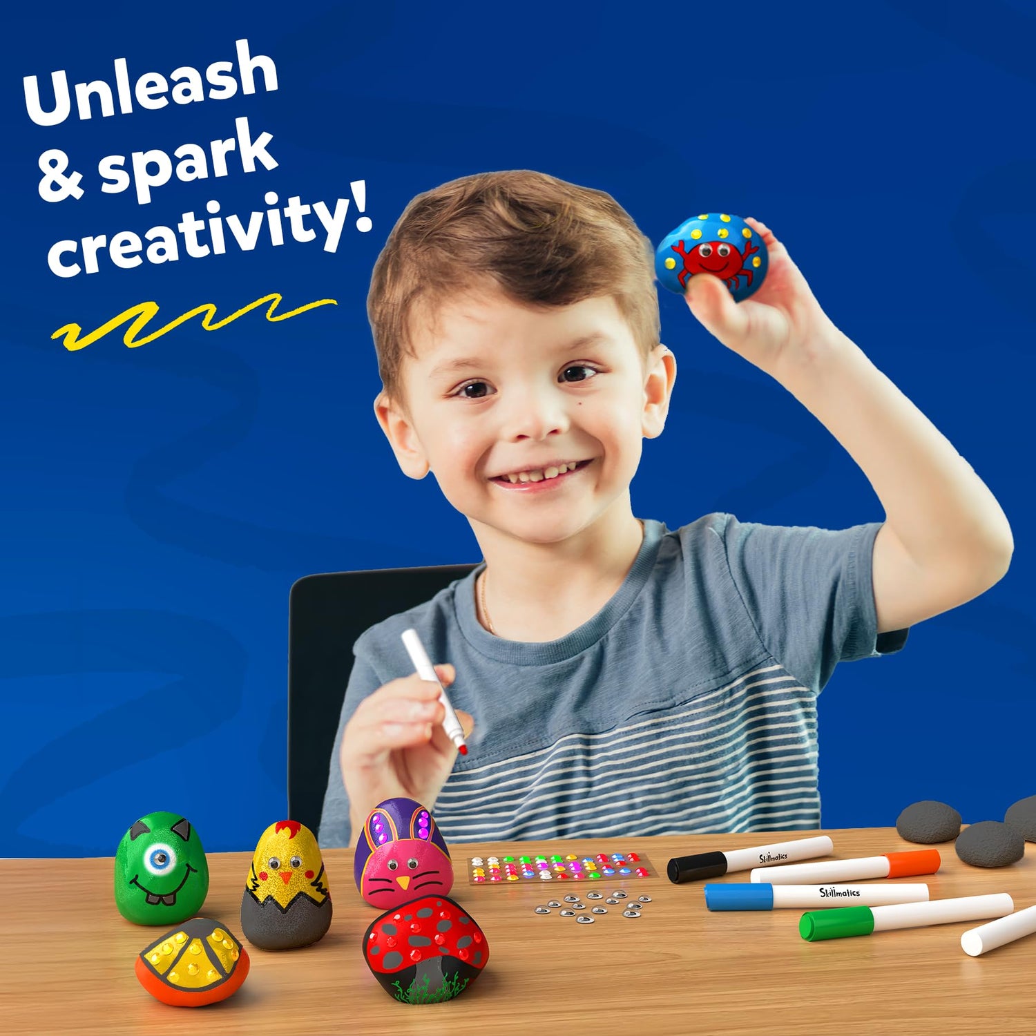 Skillmatics Rock Painting Kit - Mess-Free Art & Craft Activity for Girls & Boys, Craft Kits & Supplies, DIY Creative Activity, Christmas Gifts for Kids Ages 4, 5, 6, 7, 8, 9, 10, 11,12