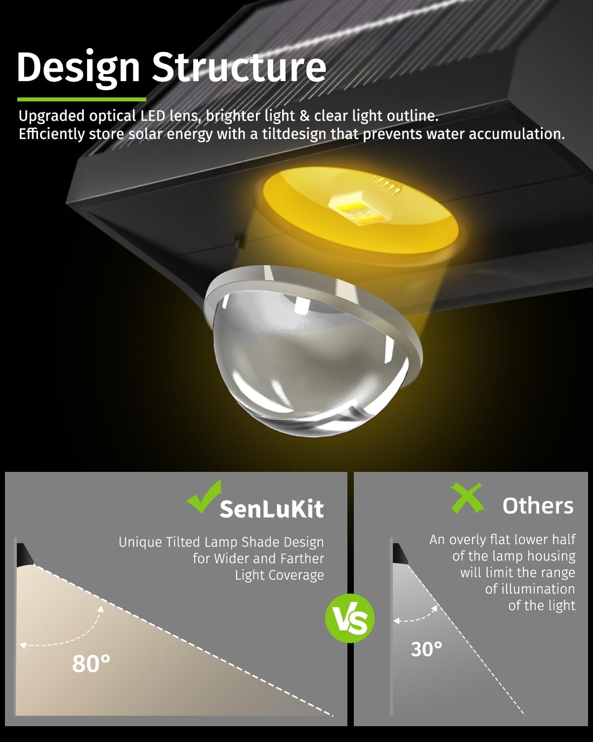 - šćUnique Light & Dazzling Nightsć- SenLuKit outdoor solar fence lights use the latest outdoor led program, equip with lens which is high light transmission, can increase brightness and improve the beauty of the decoration. The lens can focus the light emitted by the led, forming a more concentrated and intense light beam, easily light up your yard at night of brightness. If you're looking for an environmentally friendly and economical way to light up your yard, this solar-powered option is sure to impress you.