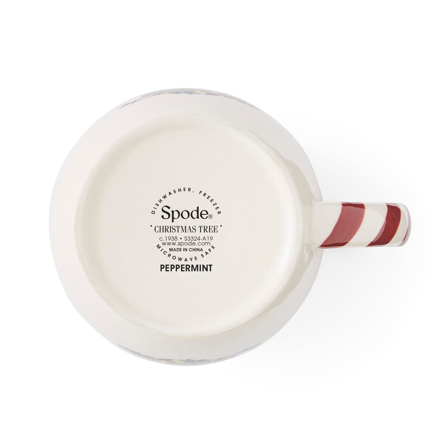 Spode Christmas Tree 14 oz Holiday Mugs (Set of 4) - Festive Coffee Cups with Peppermint Candy Cane Handle, Stoneware Christmas Drinkware Ideal for Hot Cocoa, Holiday Tea & Winter Beverages