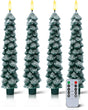 Stmarry 4 PCS Flameless Christmas Tree Candles with Remote, Snow Covered Real Wax Flameless Taper Candles 9.65 Inch, LED Candlesticks Battery Operated with 3D Flickering Flame, Christmas Candles Decor