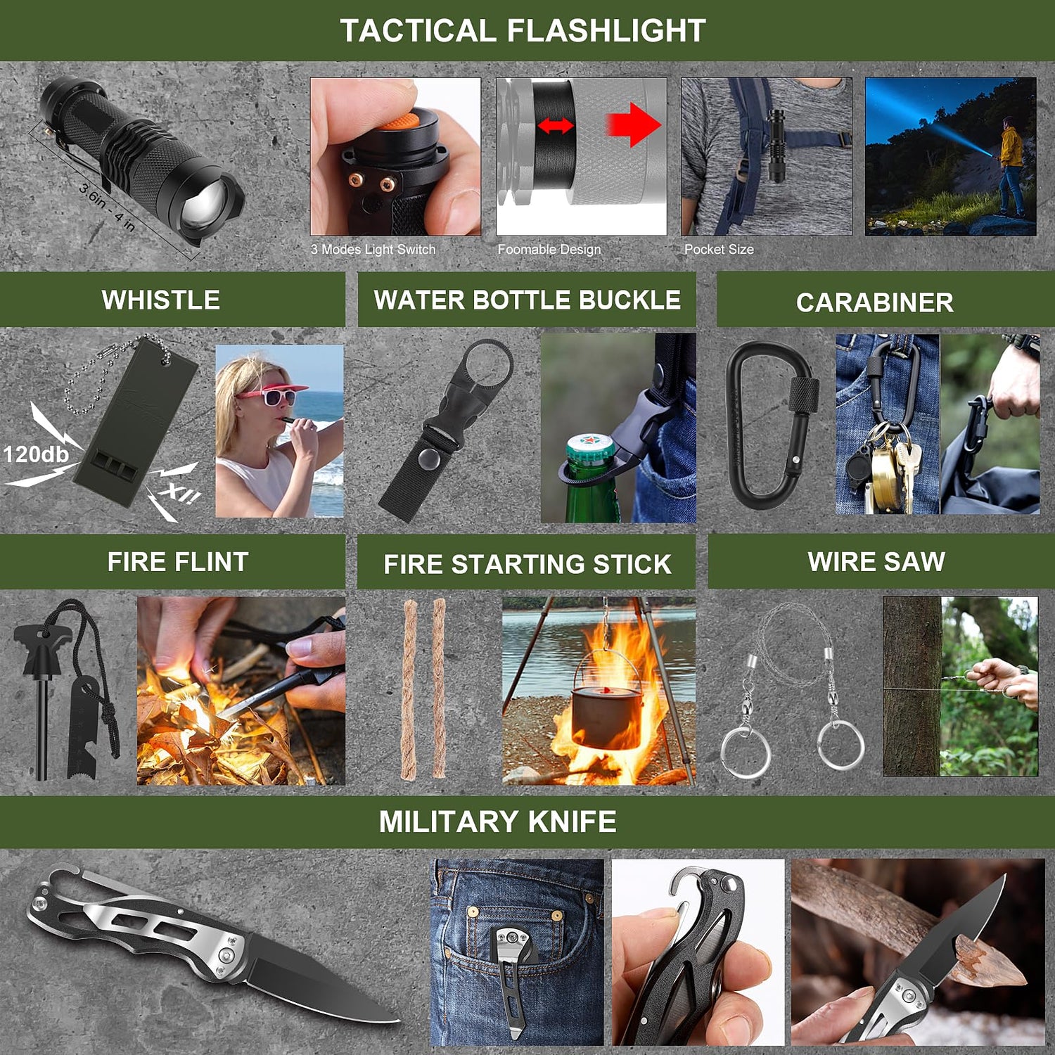 - 【Comprehensive First Aid & Survival Kit, Cool Gifts for Men, Dad, Husband & Families】 Designed by emergency responders and survival experts, this ultra-compact yet complete medical and tactical kit delivers essential first aid supplies and critical survival tools for any crisis. A must-have for your bug-out bag, car emergency kit, or home preparedness stash. Perfect for Christmas, birthdays, Father’s Day, and outdoor enthusiasts!