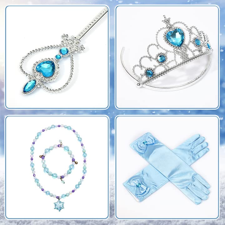 - 8 pcs Luxury Snow Accessories: Princess dress up set includes 8 accessories,1 silver-white braid wig with snow-shaped hairpin,1 princess wand with blue gemstones,1pcs crown tiara,1 necklace,1 bracelet,1 snow hairpin, a pair of snow gloves, Tacobear hopes princess accessories makes the kids more like a princess in real life