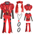 TAMOSKY Rise of Red Costume Girls Kids Halloween Christmas Cosplay Outfits with Red Cosplay Wig Includes Heart Shirt Jacket Pants Set Party Dress up for Kids 4-14Y