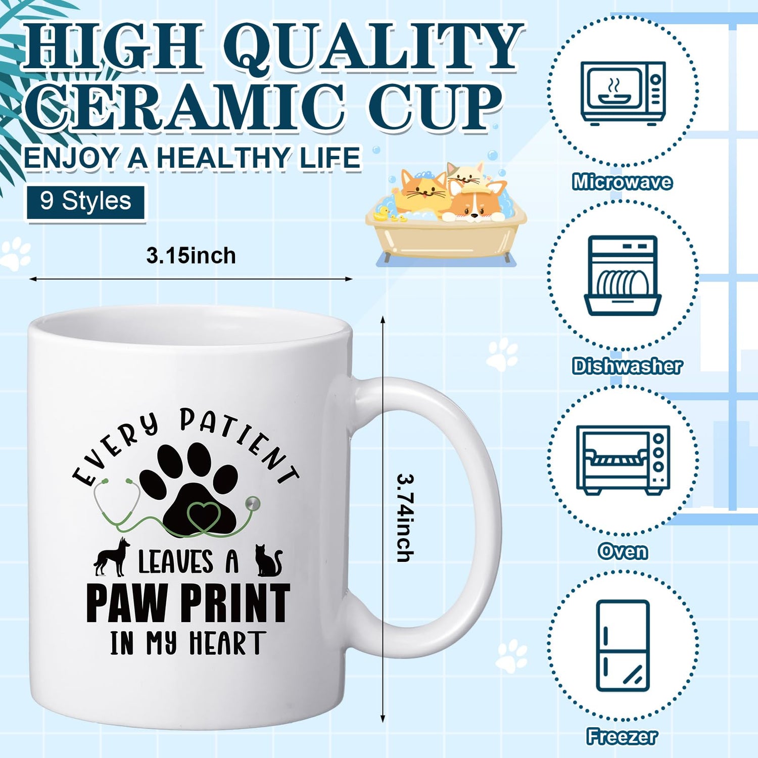 Teenyyou 9 Pcs Vet Tech Week Gifts Mug Bulk 11oz Veterinarian Ceramic Coffee Cup for Women Men Veterinary Technician Gift for Medical Graduate Dog Doctor Animal Lover Christmas Thank You Present