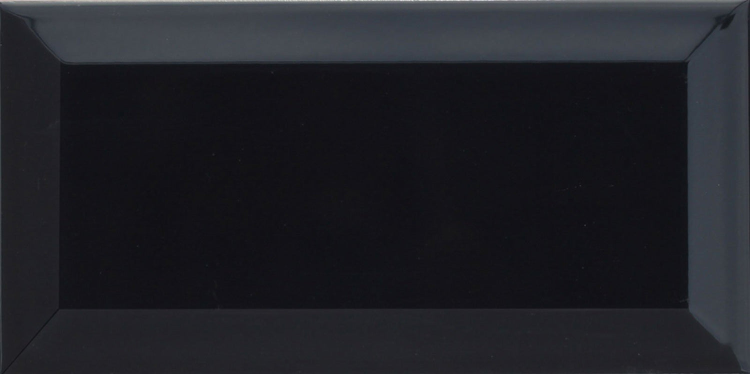 The Bath People 24648 Metro Bevelled Edge Brick Glossy Wall Kitchen Bathroom Tiles, Black-(100mm x 200mm)
