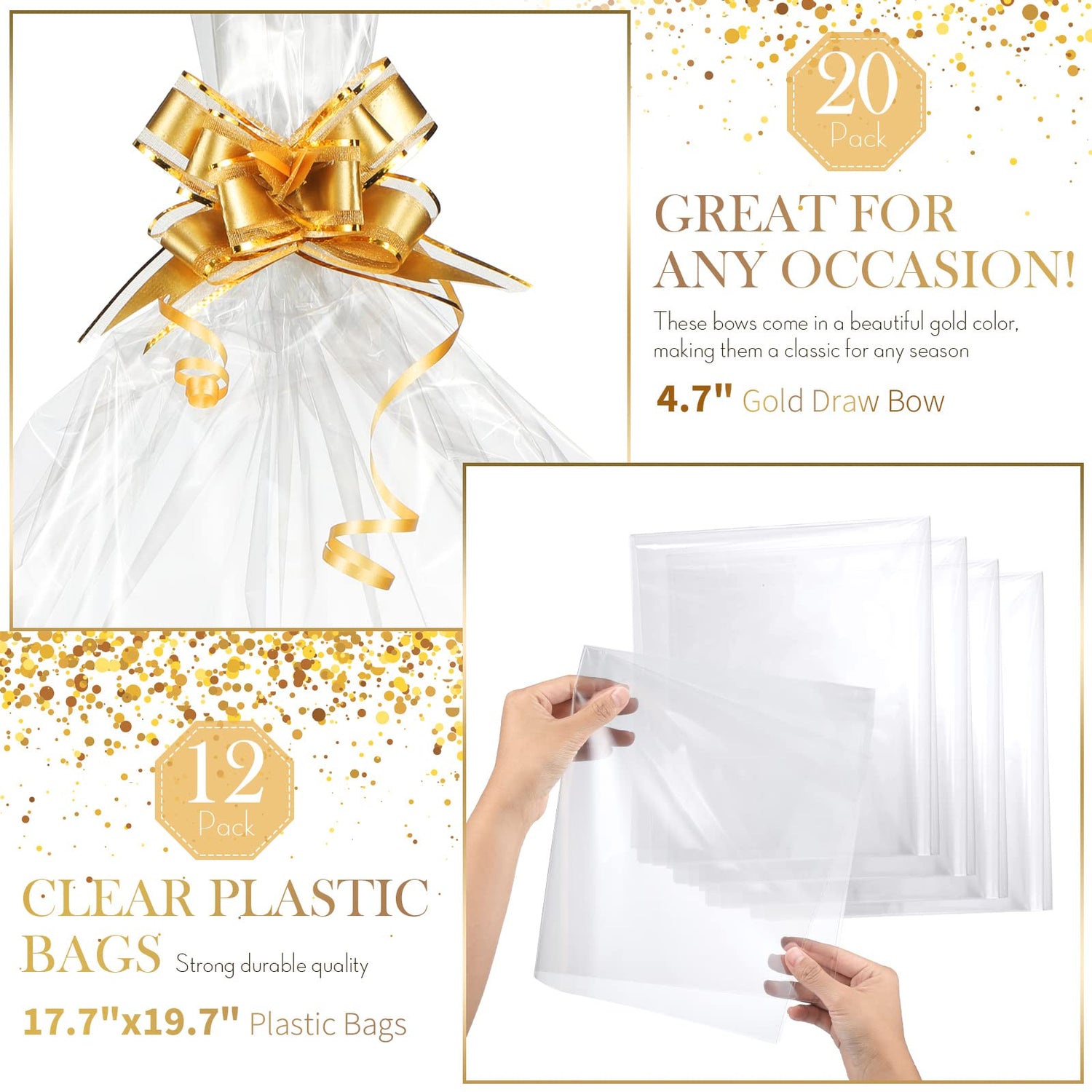 • Nice Combination: you will get 44 pieces of basket for gifts empty in total, including 12 pieces of empty baskets, 12 pieces of plastic bags and 20 pieces of pull bows, attractive and sufficient, a nice combination is enough to meet your needs for wrapping gifts