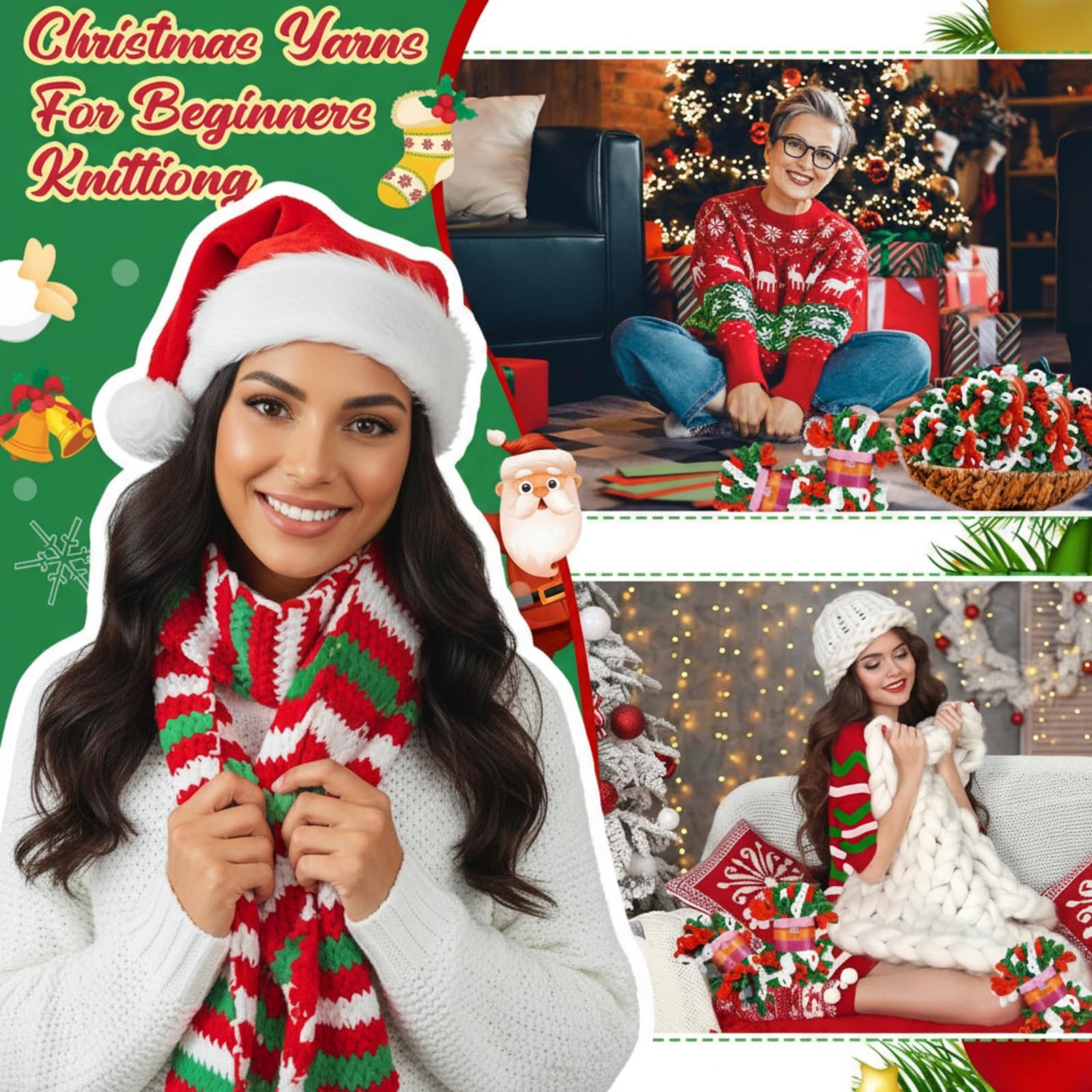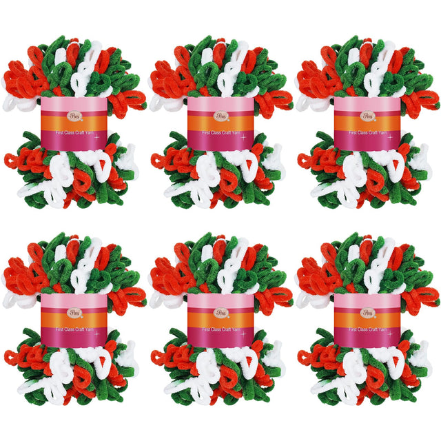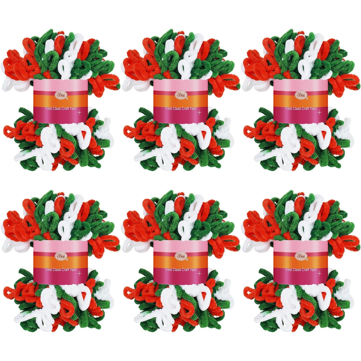 Threlaco 6 Skeins Christmas Loop Yarn Finger Loops Yarn Bulk Soft Chunky Yarns 600 g for Christmas Yarns Beginners Knitting No Needles or Hooks Crochet Gift Craft (Red, White, Green)