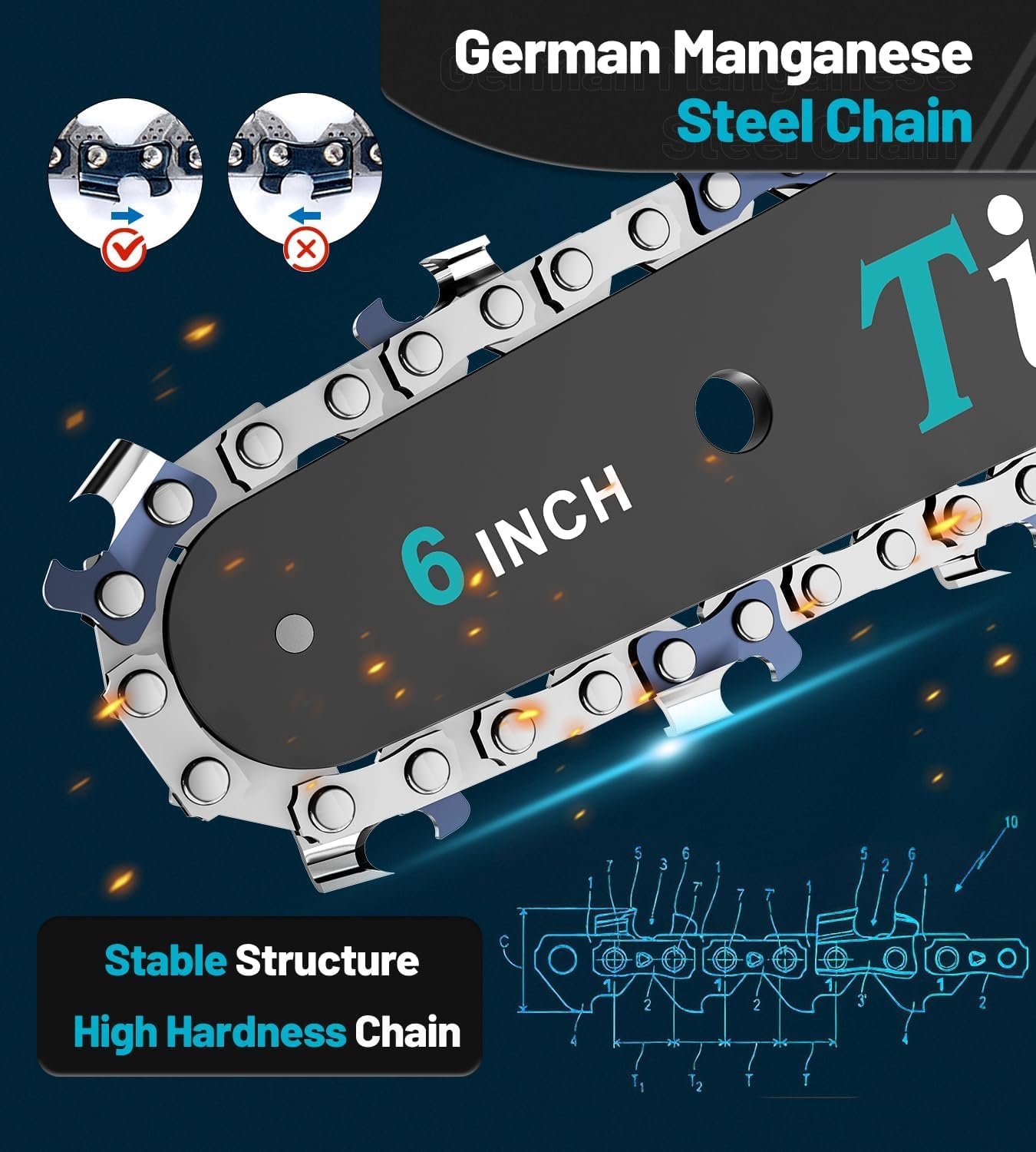 - SECURITY DESIGNS: 1. Security lock prevents accidental activation (The security lock & start button need to be pressed simultaneously for the chainsaw to start); 2. Safety baffles to prevent the wood from splashing; 3. Equip with an anti-slip texture handle, making you grip the mini chainsaw tightly; Safety comes, please feel free to use it!