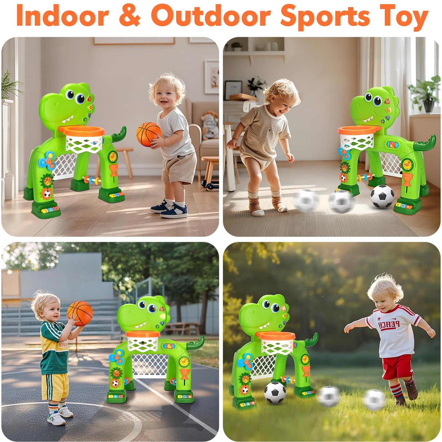 • Ideal Gift for Baby Boys: This interactive dinosaur toy comes with a exquisite box, making it super easy to set up. Great present toy for 12-18-36 months baby. Perfect birthday or Christmas gift for kids 1 2 3 year old. These basketball and soccer toy sets also help parents and kids bond while having a blast together. Engage in active playtime whether indoor or outdoor. Ready, Shoot and Have fun!
